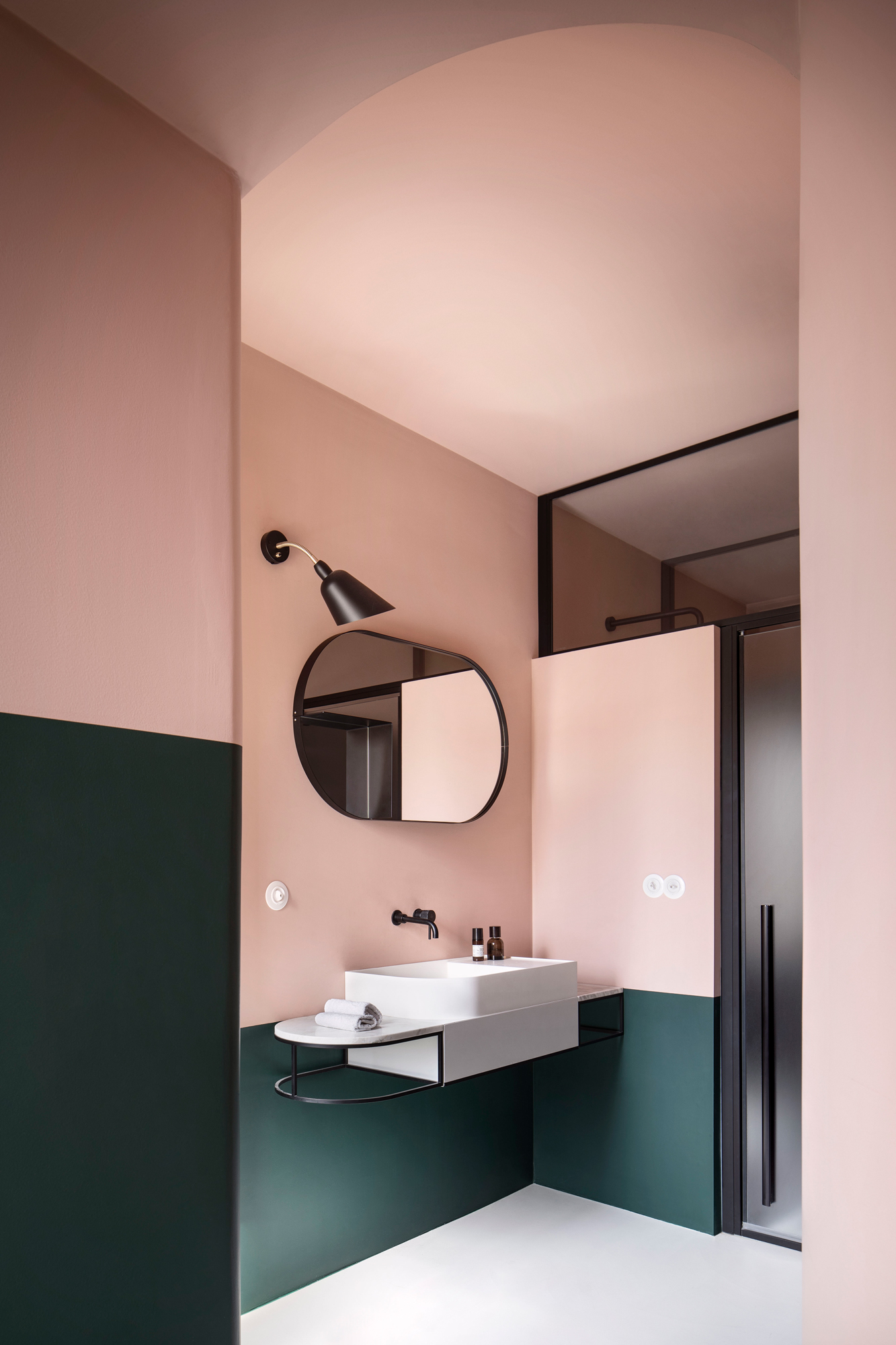 아치와 함께 욕실은 이 집의 디자인의 중심입니다.