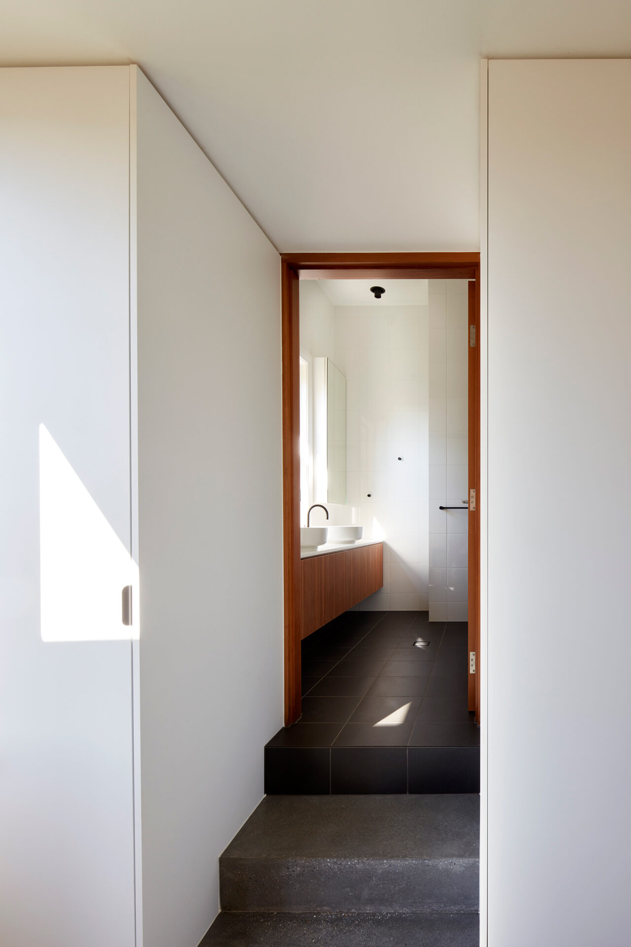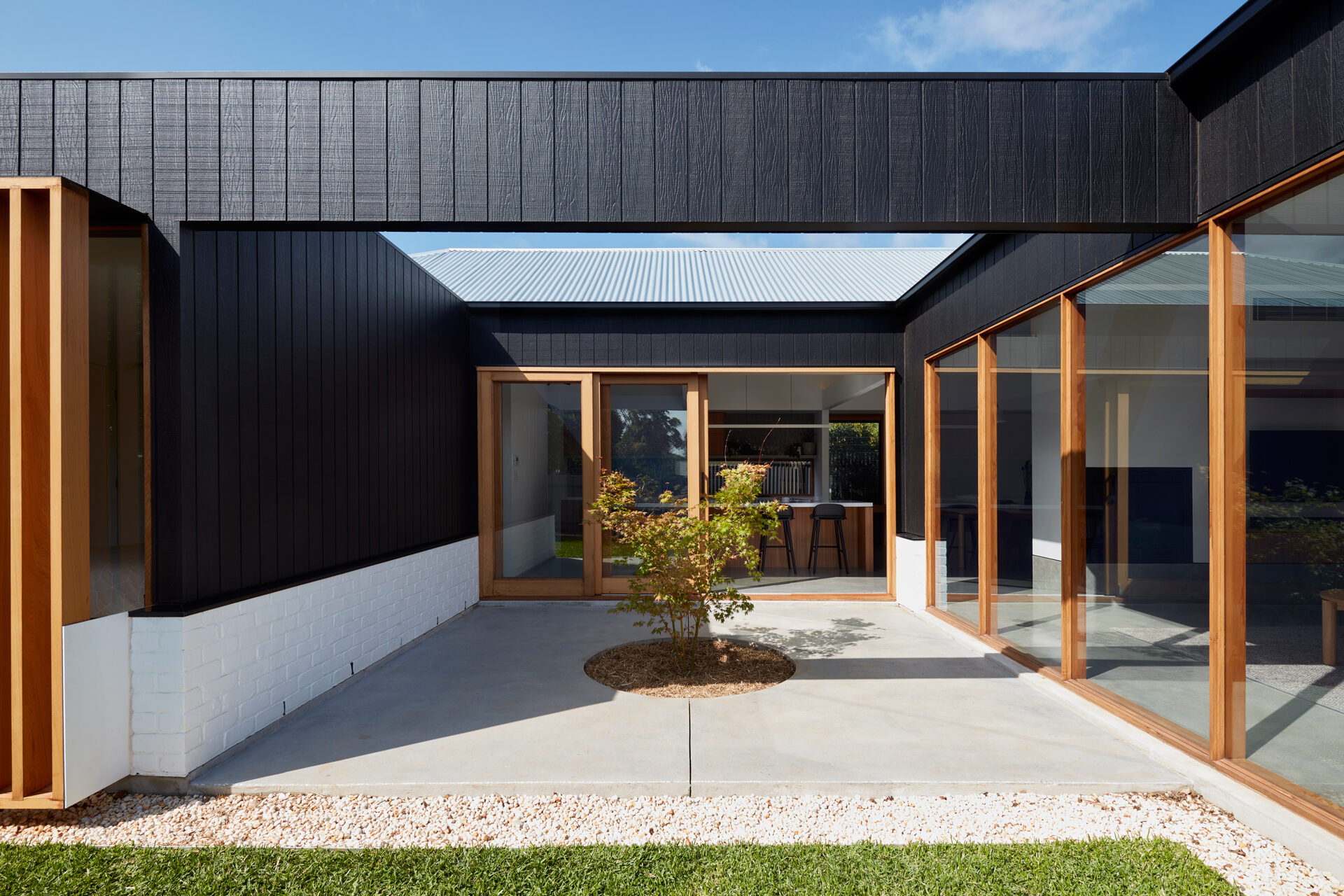 외부의 블랙톤의 독특한 집은 내부로 들어가면 화이튼 톤으로 깨끗한 느낌을 주며 대비를 통해 이를 극대화합니다.