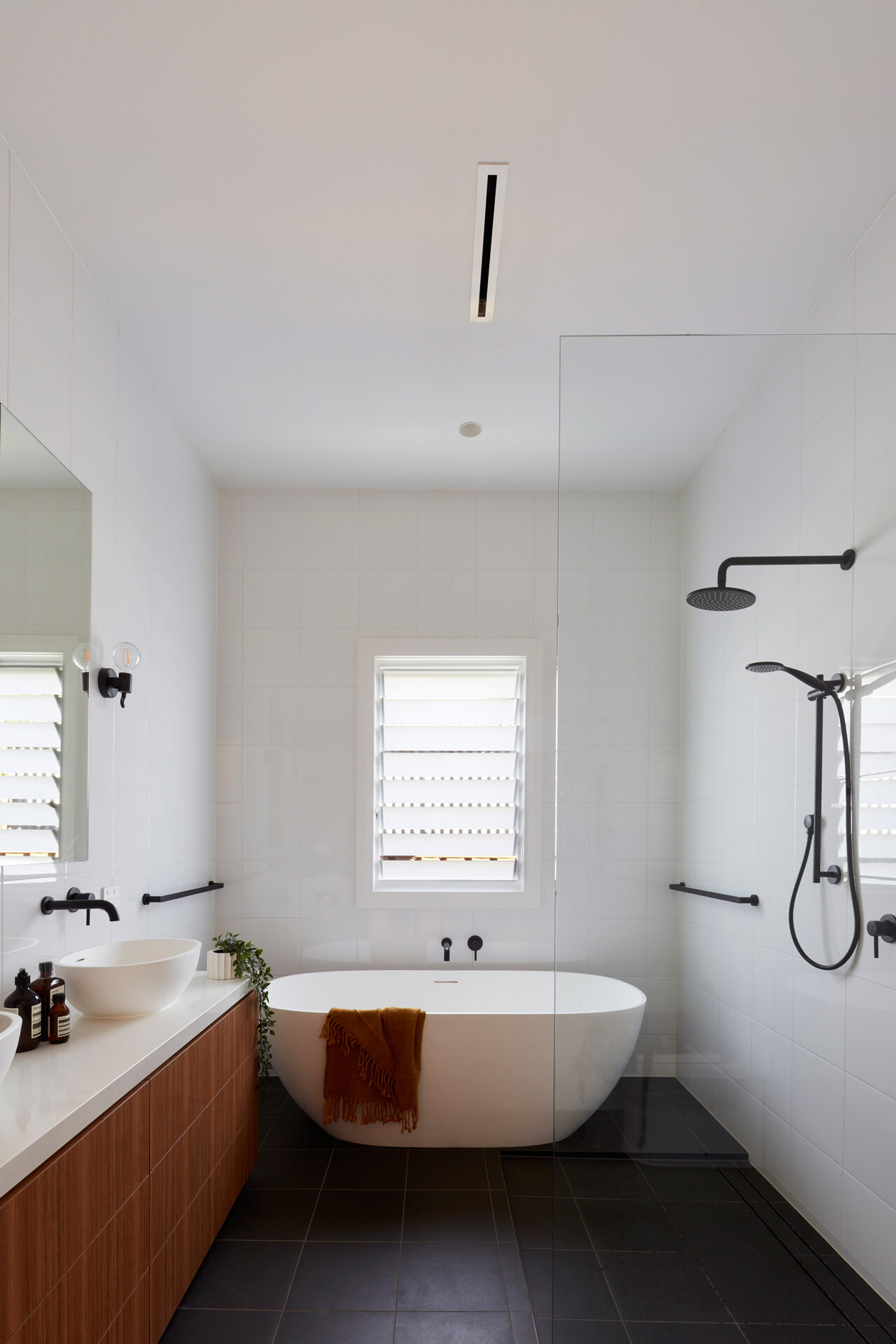 화이트 중심의 색감은 포인트로 블랙과 나무를 사용하여 외부와 조화롭게 어울립니다.