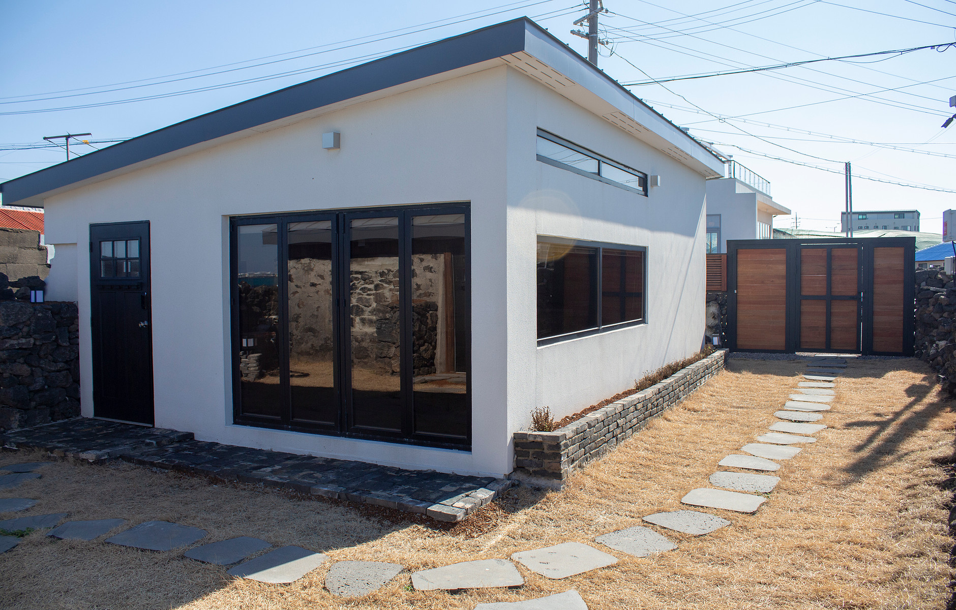작은 정원을 안고 있는 가지런한 제주 오오오하우스