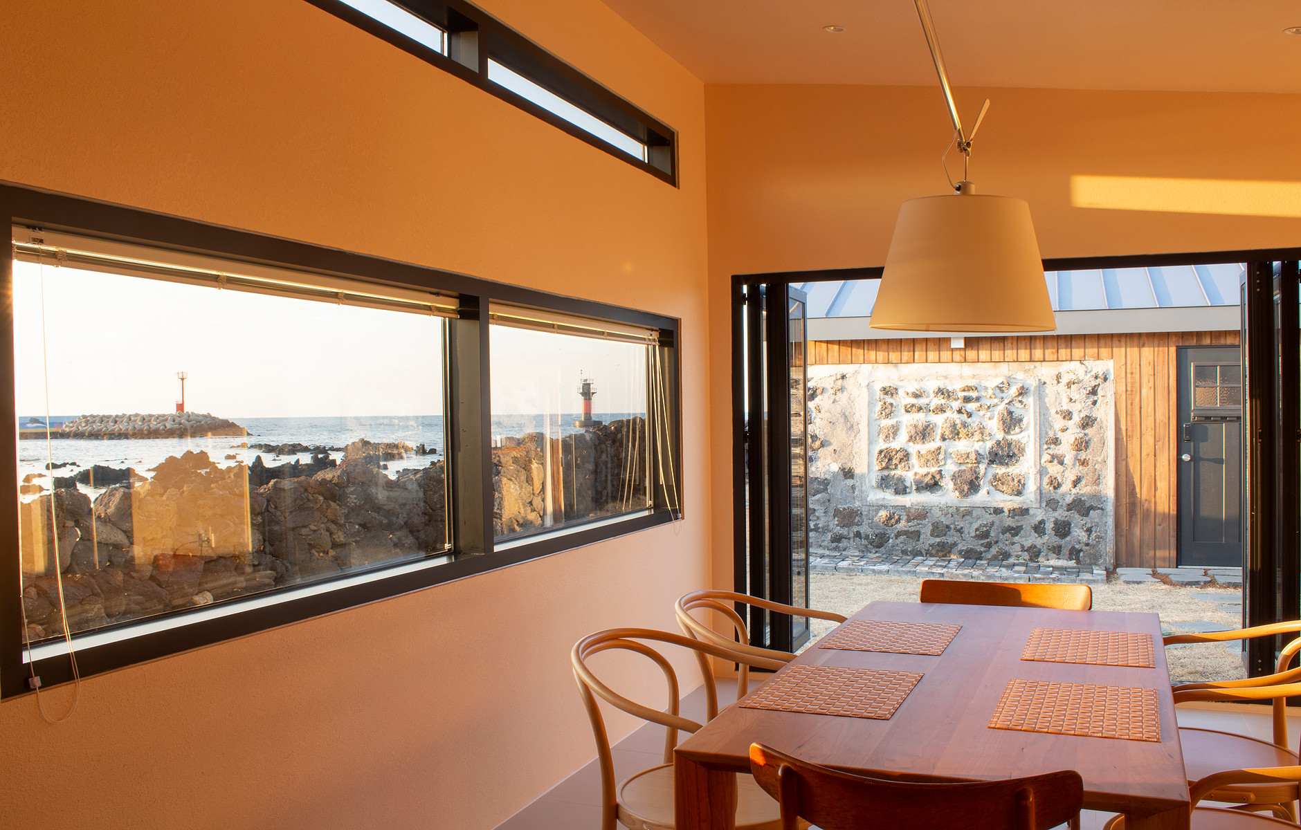 제주도민박집 말로나스테이는 제주의 오래된 작은 포구가 문 앞에 있고 창문 밖으로는 바다가 펼쳐져 있습니다. 실내는 체리나무와 참나무로 편안함을 느낄 수 있게 했습니다. 제주에서 좋은