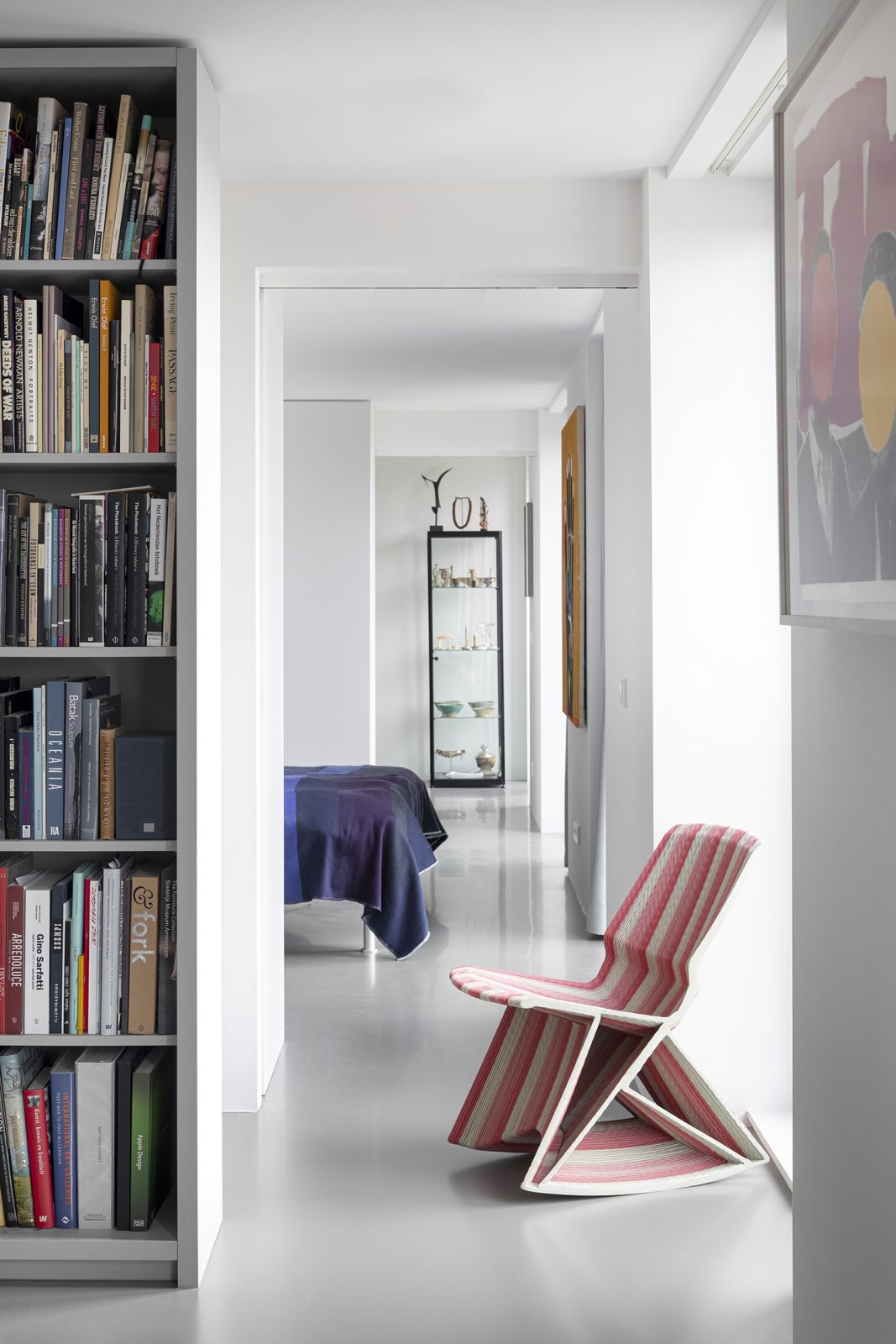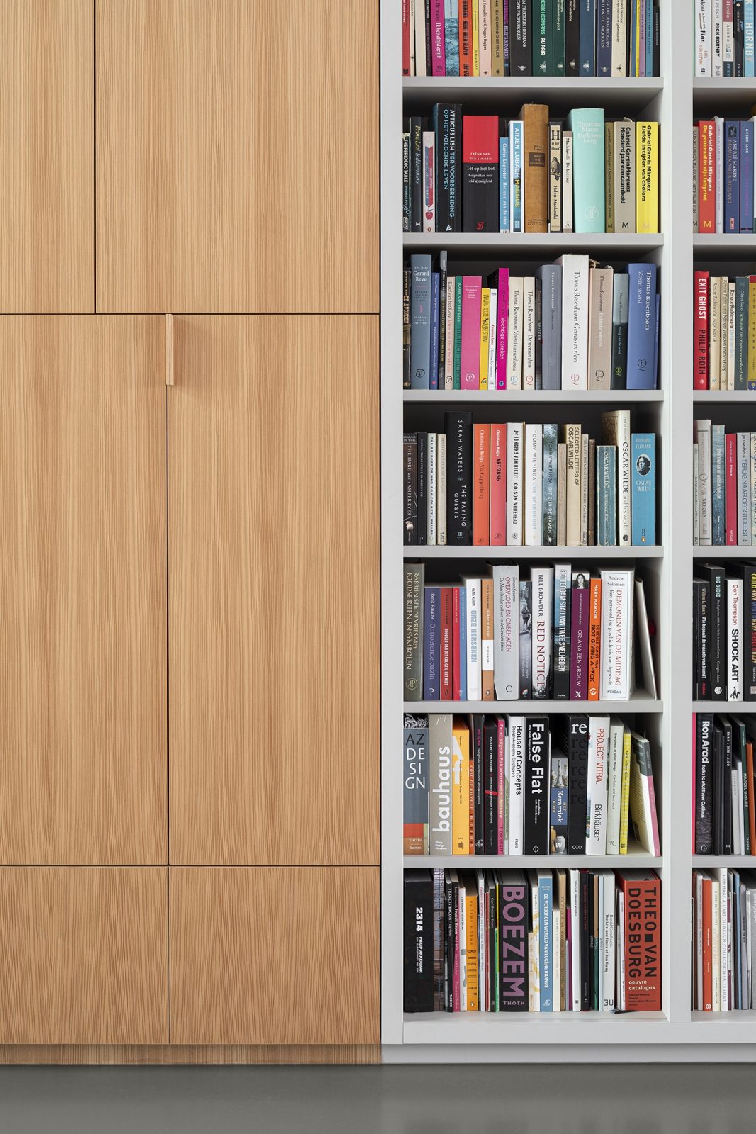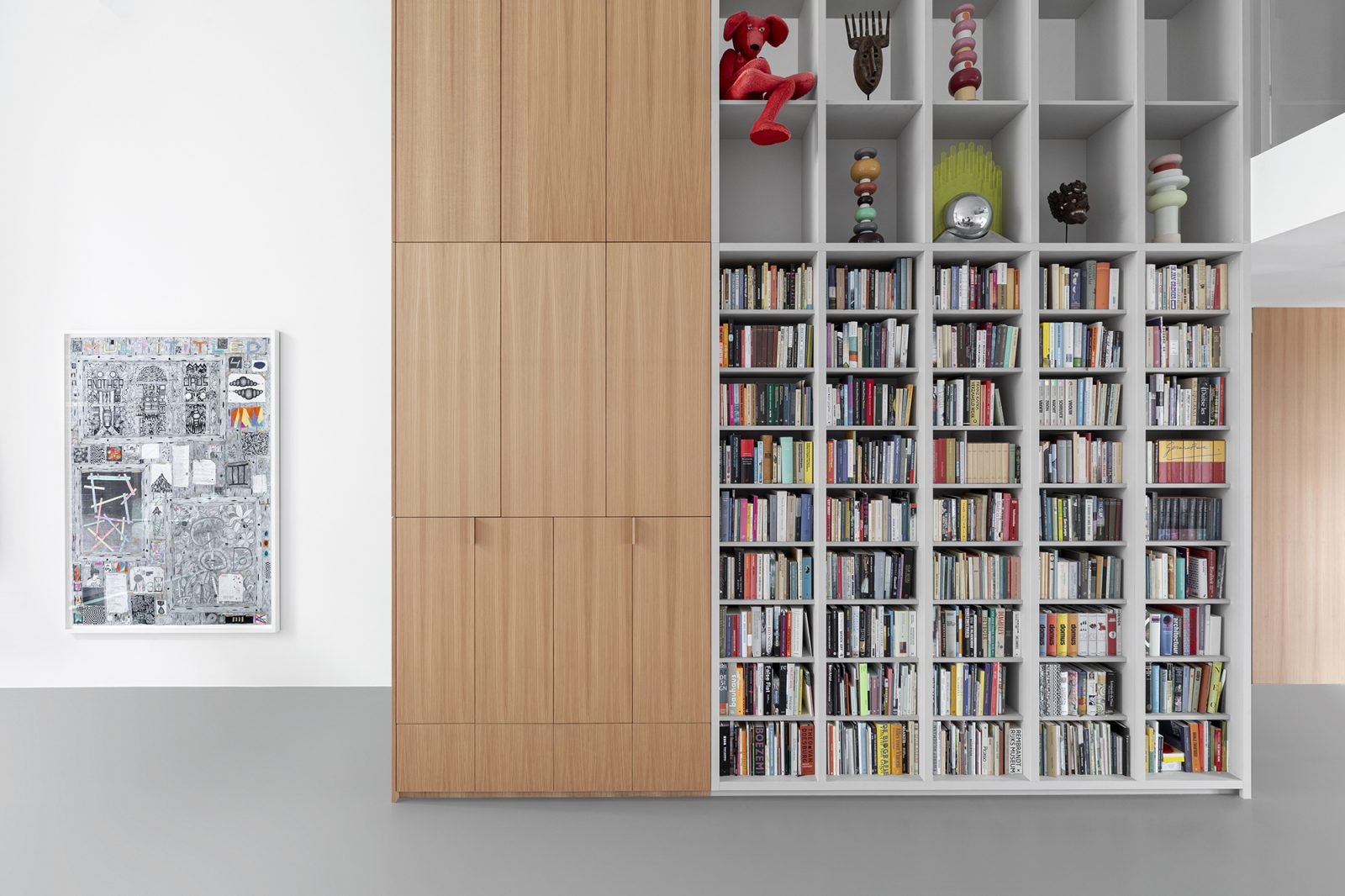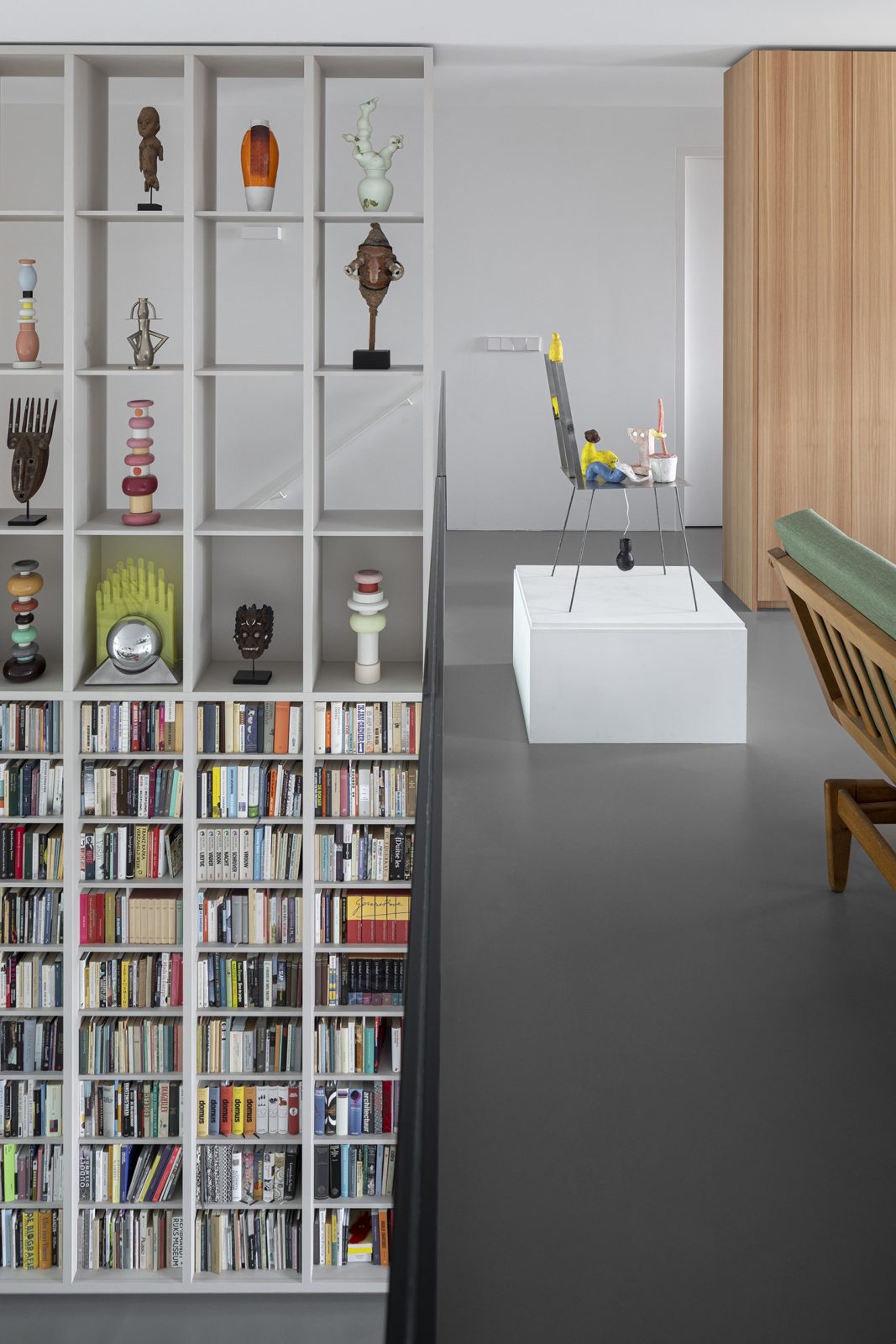 많은 양의 개인 장서와 100여 점에 이르는 미술품을 소유한 집주인은 전시와 수납이 가능한 인테리어를 원했습니다.