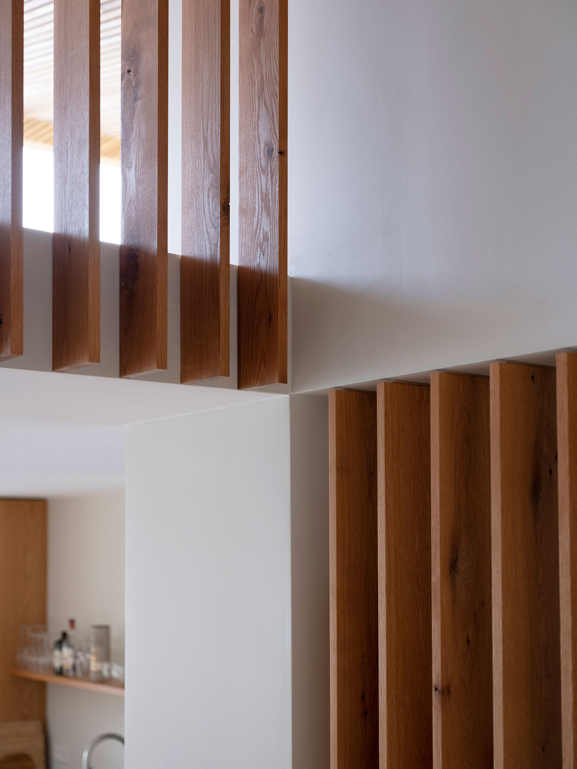 외부와는 대조적으로 내부는 화이트 톤의 벽면과 내추럴 톤의 나무가 사용되어 따뜻한 온기가 느껴지는 인테리어입니다.