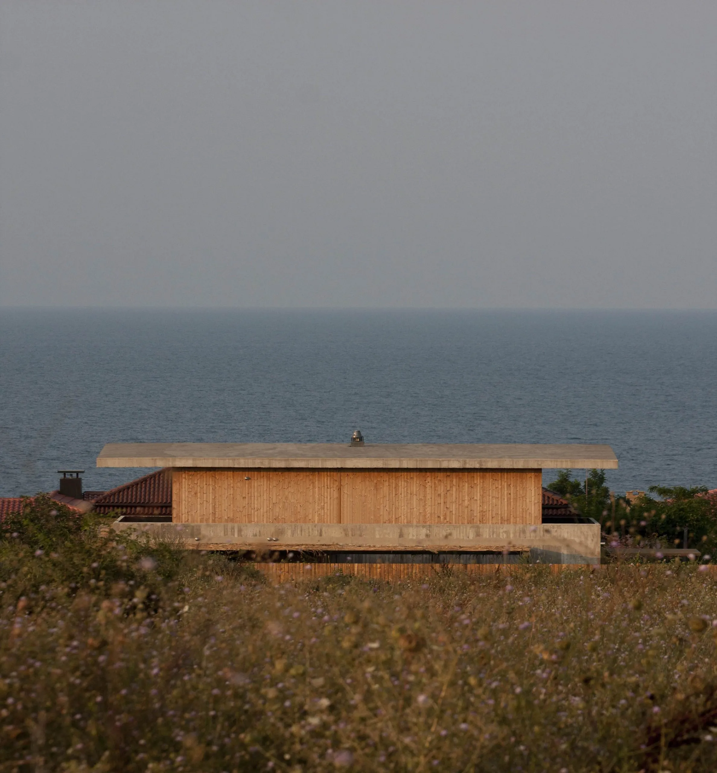 콘크리트와 나무가 조금은 투박한 외관과 나무로 정리된 내부 인테리어가
