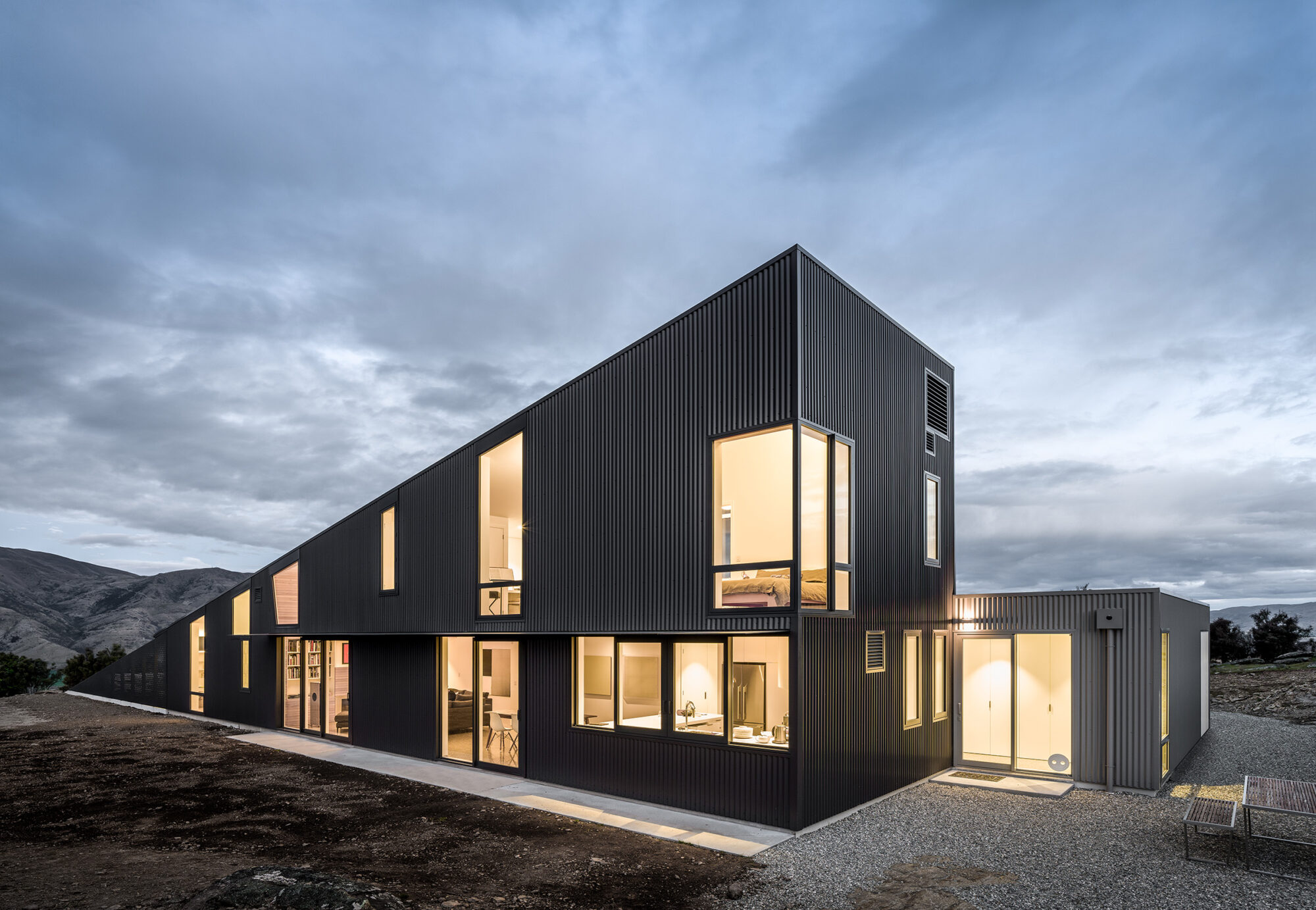 뉴질랜드 남섬에 위치한 집으로 자연속에 놓여진 기하학적인 오브제처럼 느껴지는 집입니다.