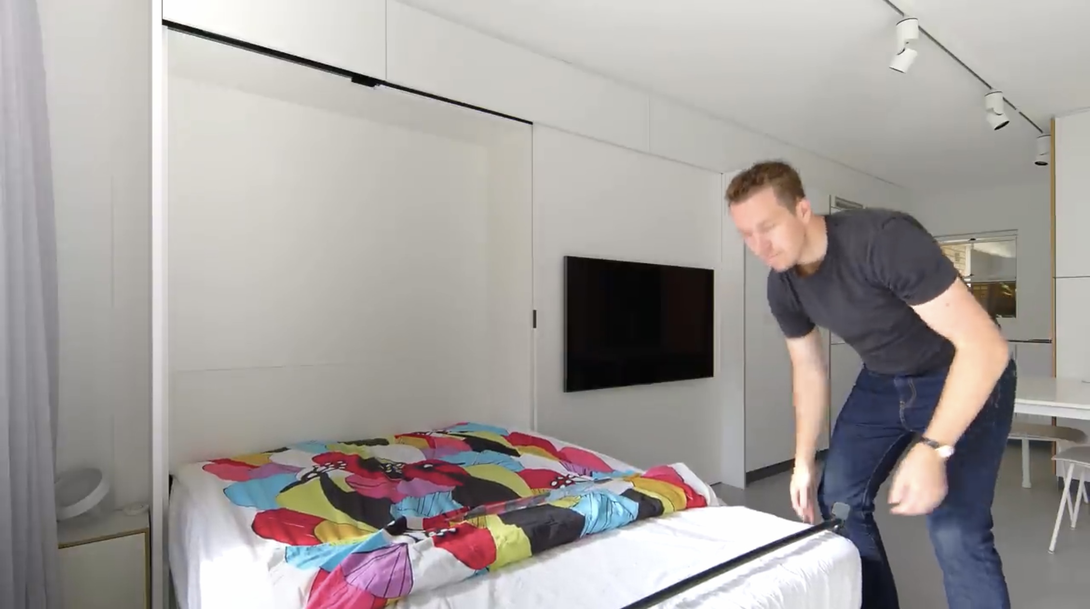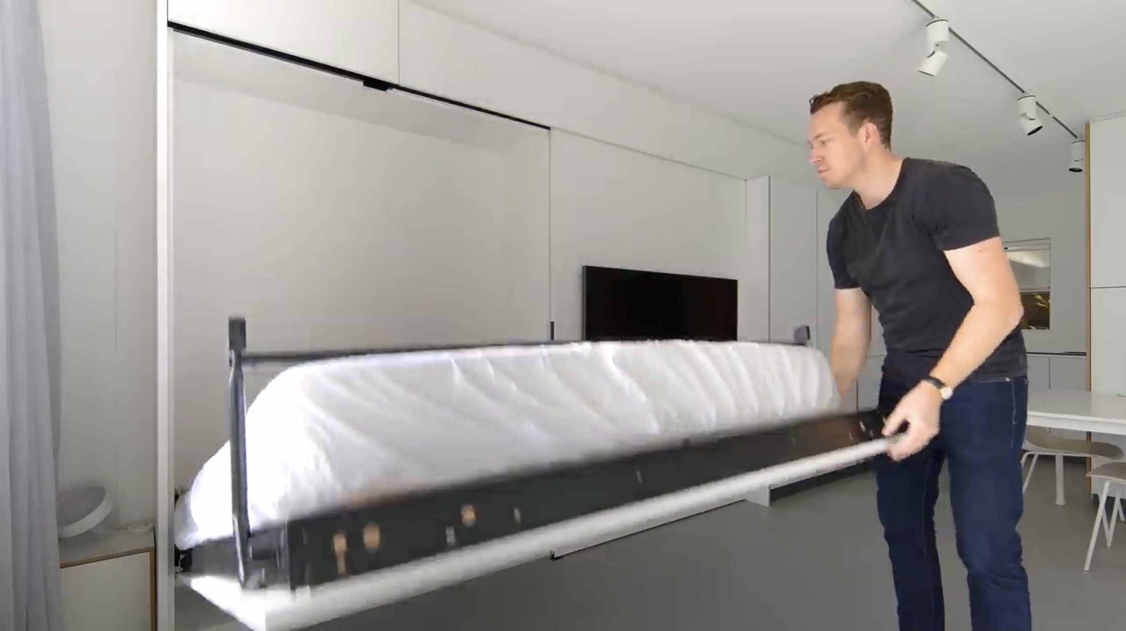 상단을 잡고 내리면 금세 침실이 완성됩니다.