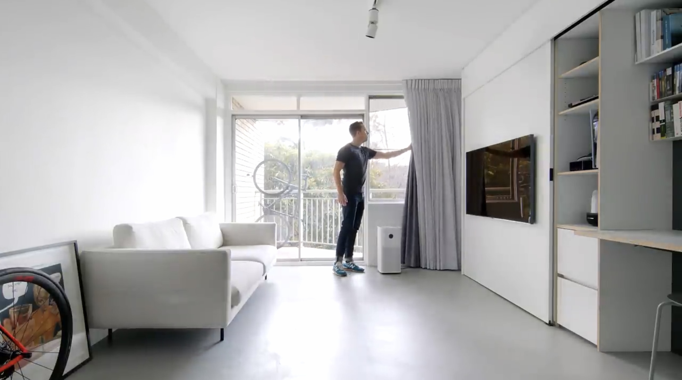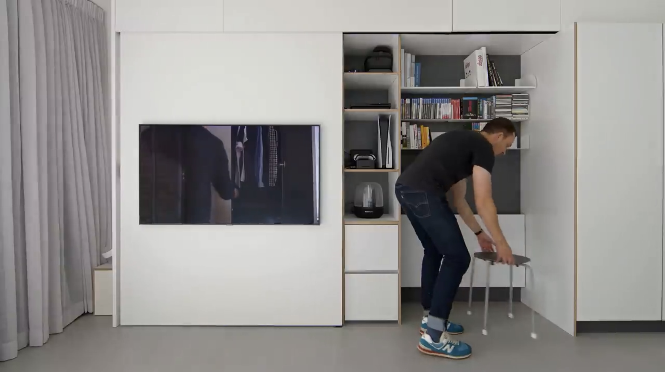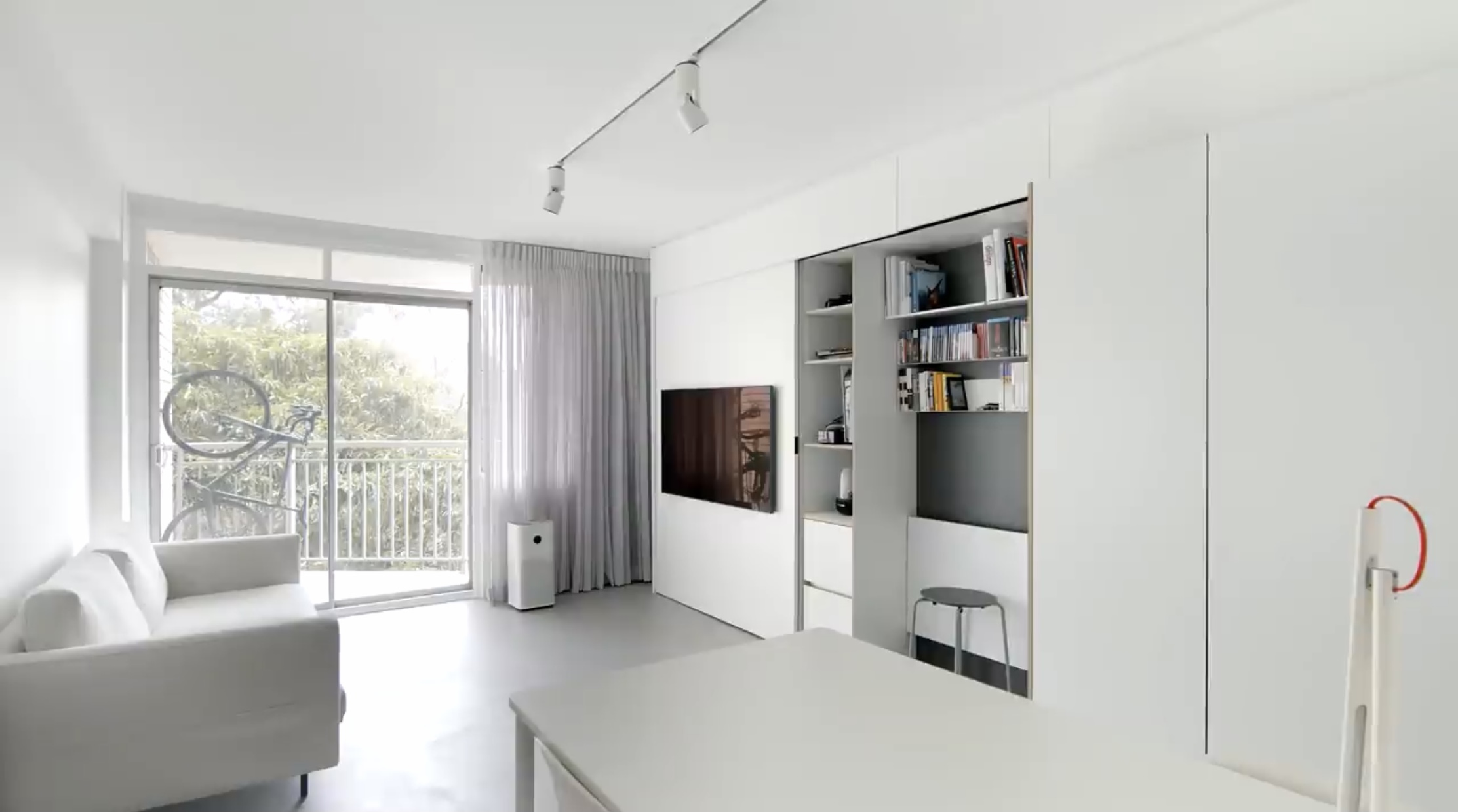 소파에 앉아서 보이는 부분, 왼쪽이 침대가 숨겨져 있습니다.