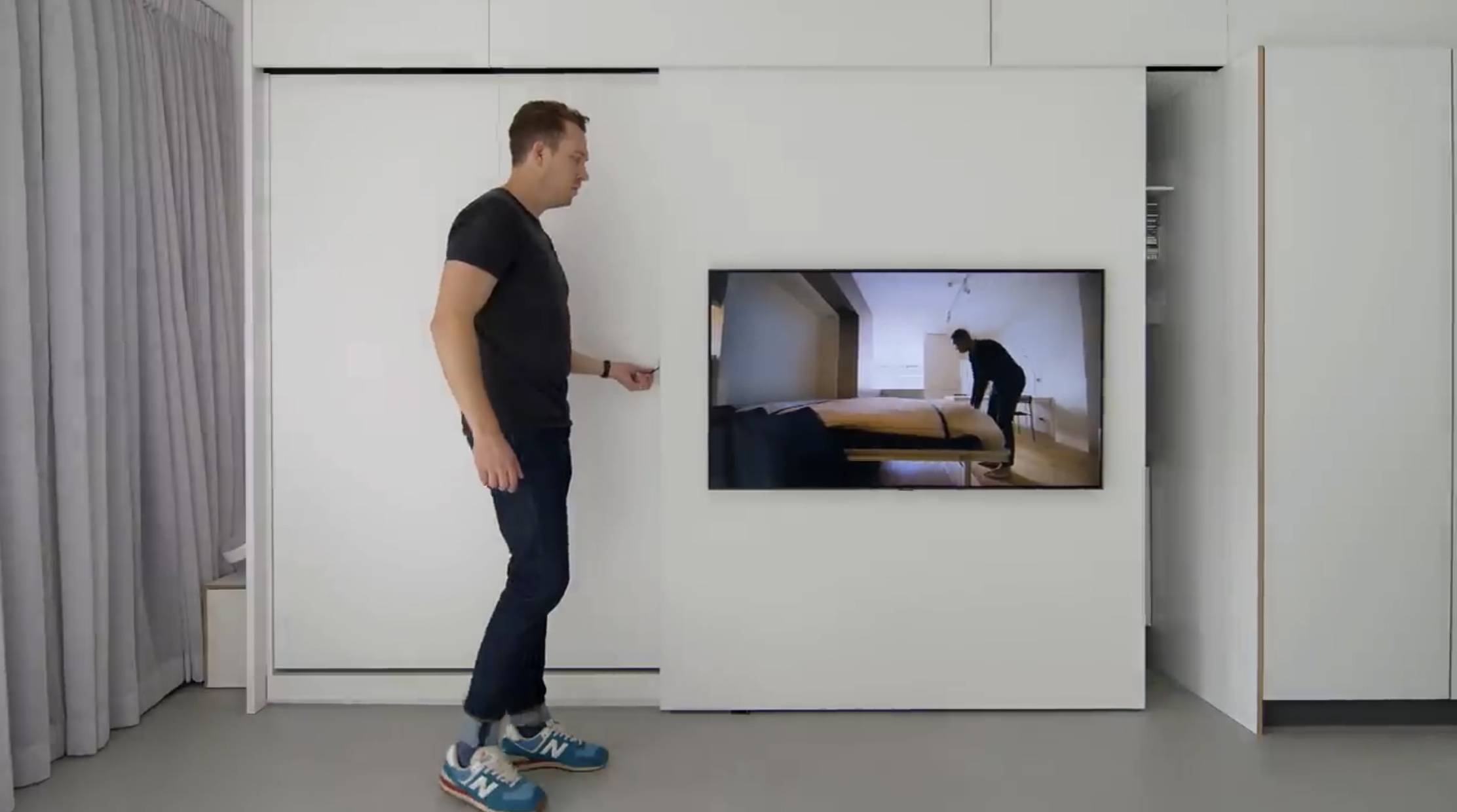 레일로 티브이에 부착된 벽을 움직일 수 있습니다.
