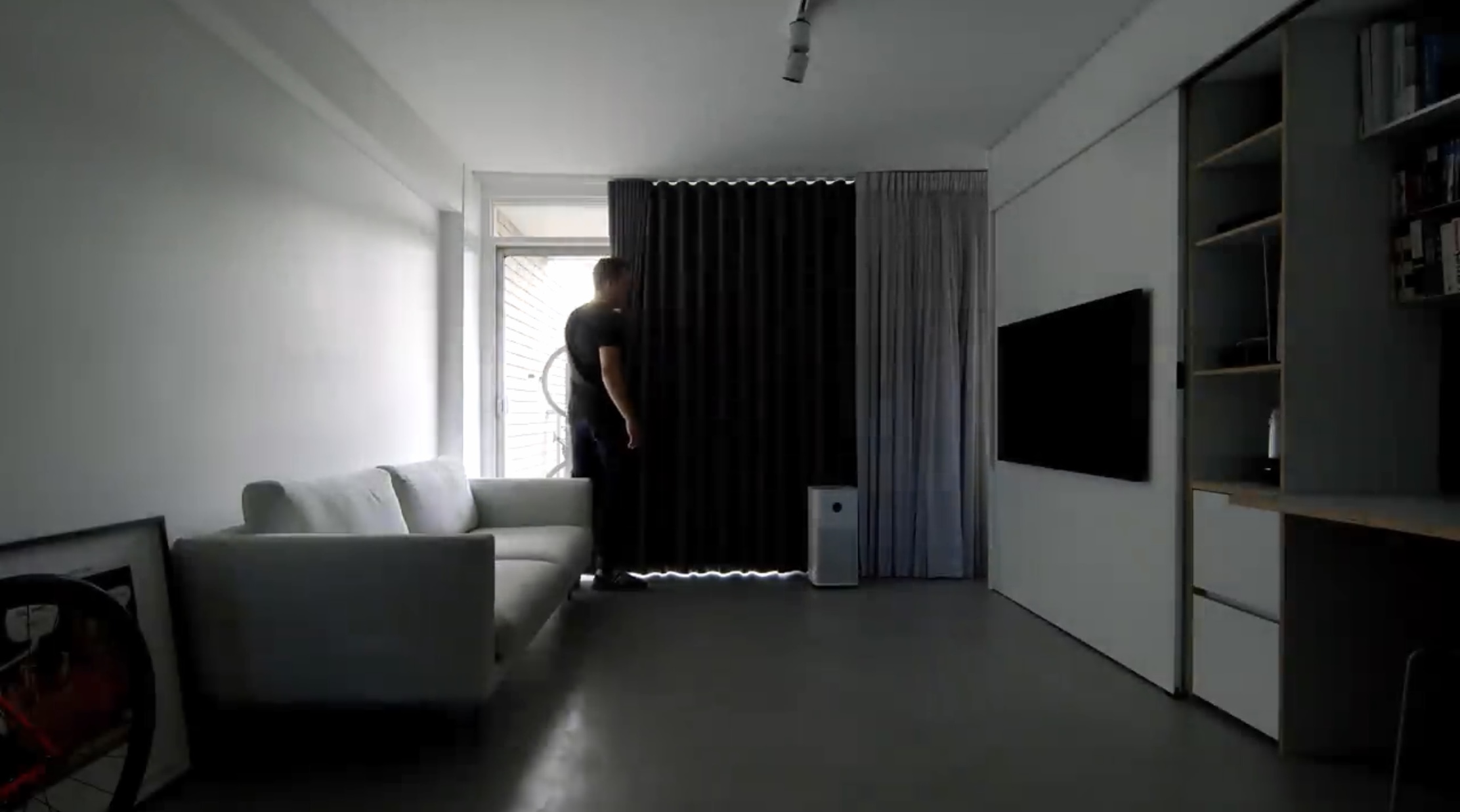 암막 커튼을 이용해 빛이 완전히 차단된 모습입니다.