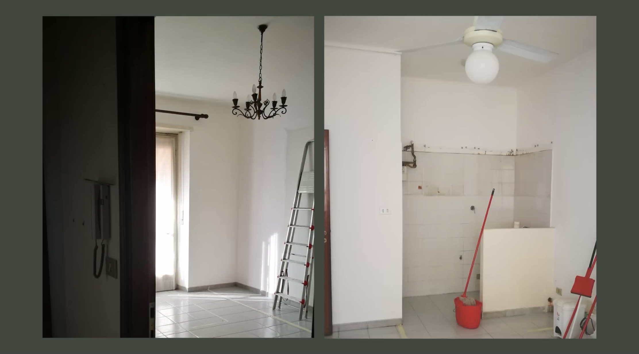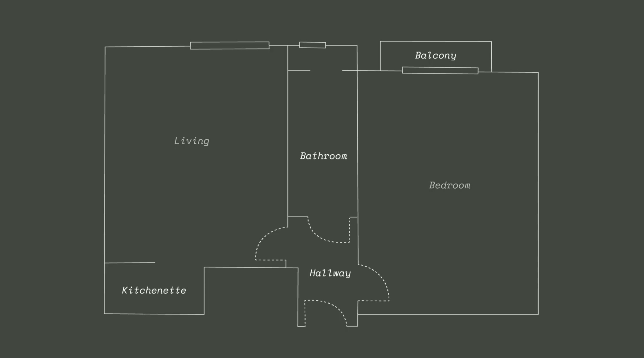 입구로 들어서면 세 개의 문이 있는 구조로 오른쪽에는 침실 가운데에는 화장실, 왼쪽에는 거실과 부엌이 있는 구조였습니다.