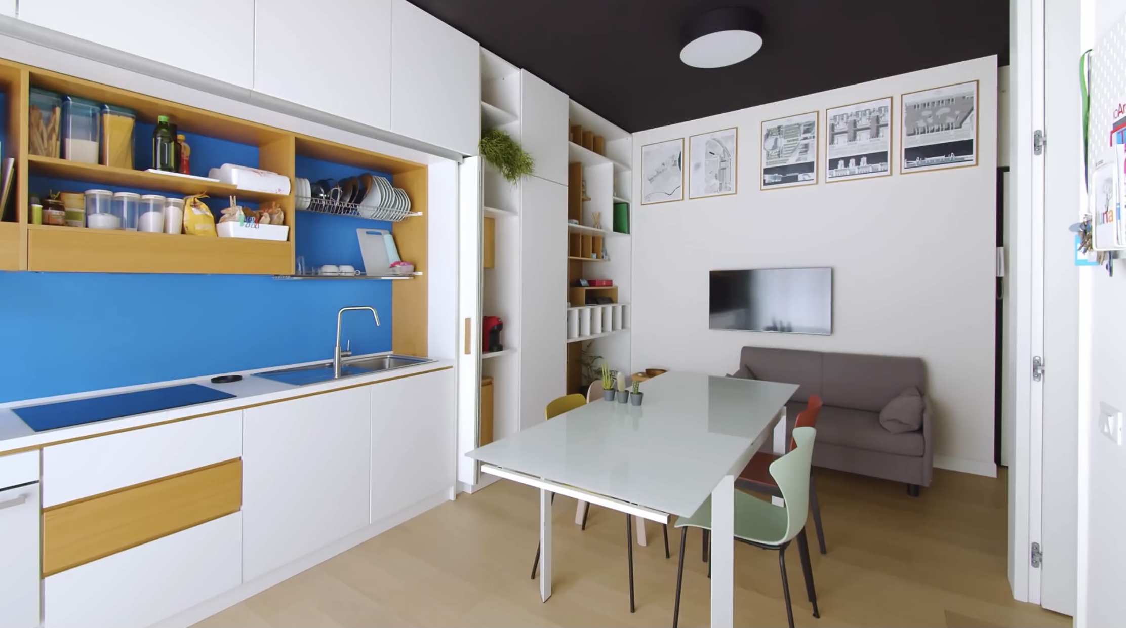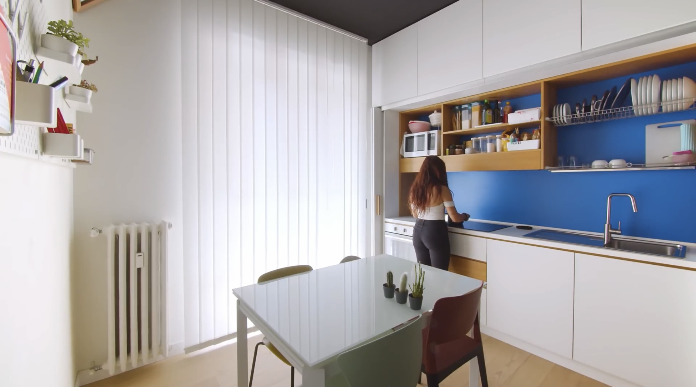 부엌은 파란색 포인트로 유니크한 느낌을 줍니다.