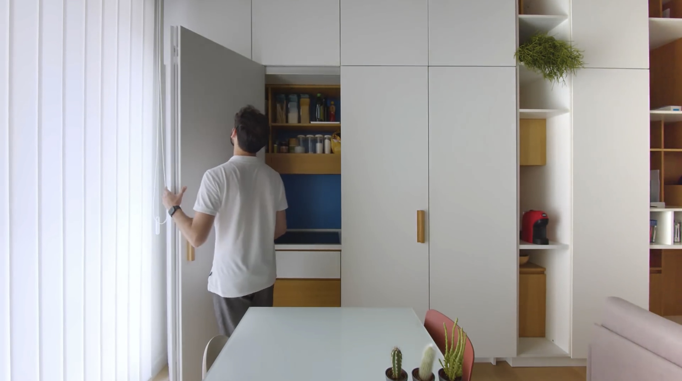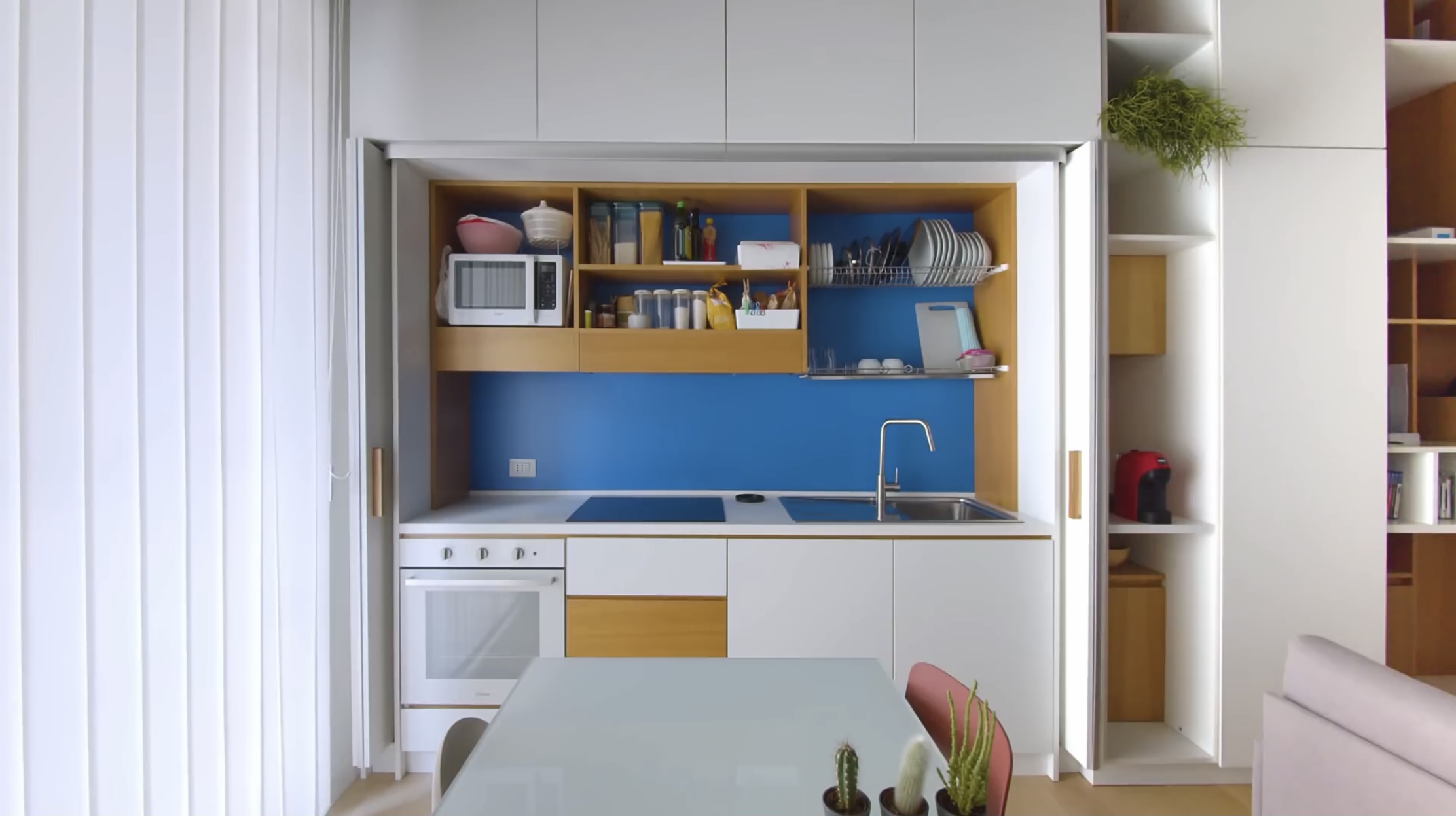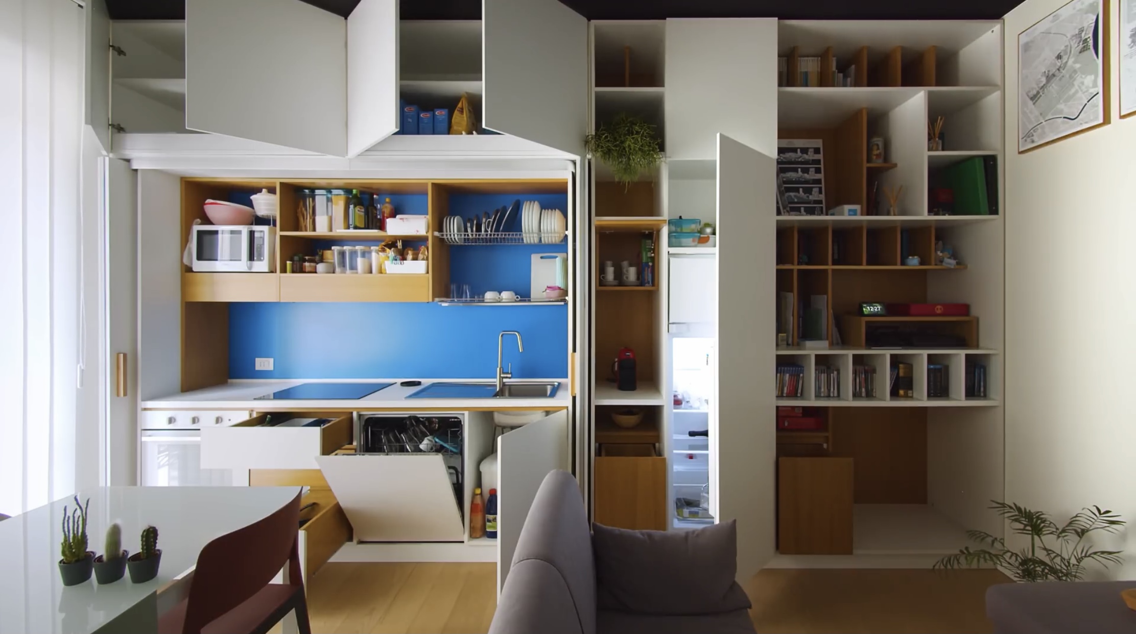 이 부엌은 여는 방식이 한쪽 방향이 아니라 양쪽으로 열립니다.