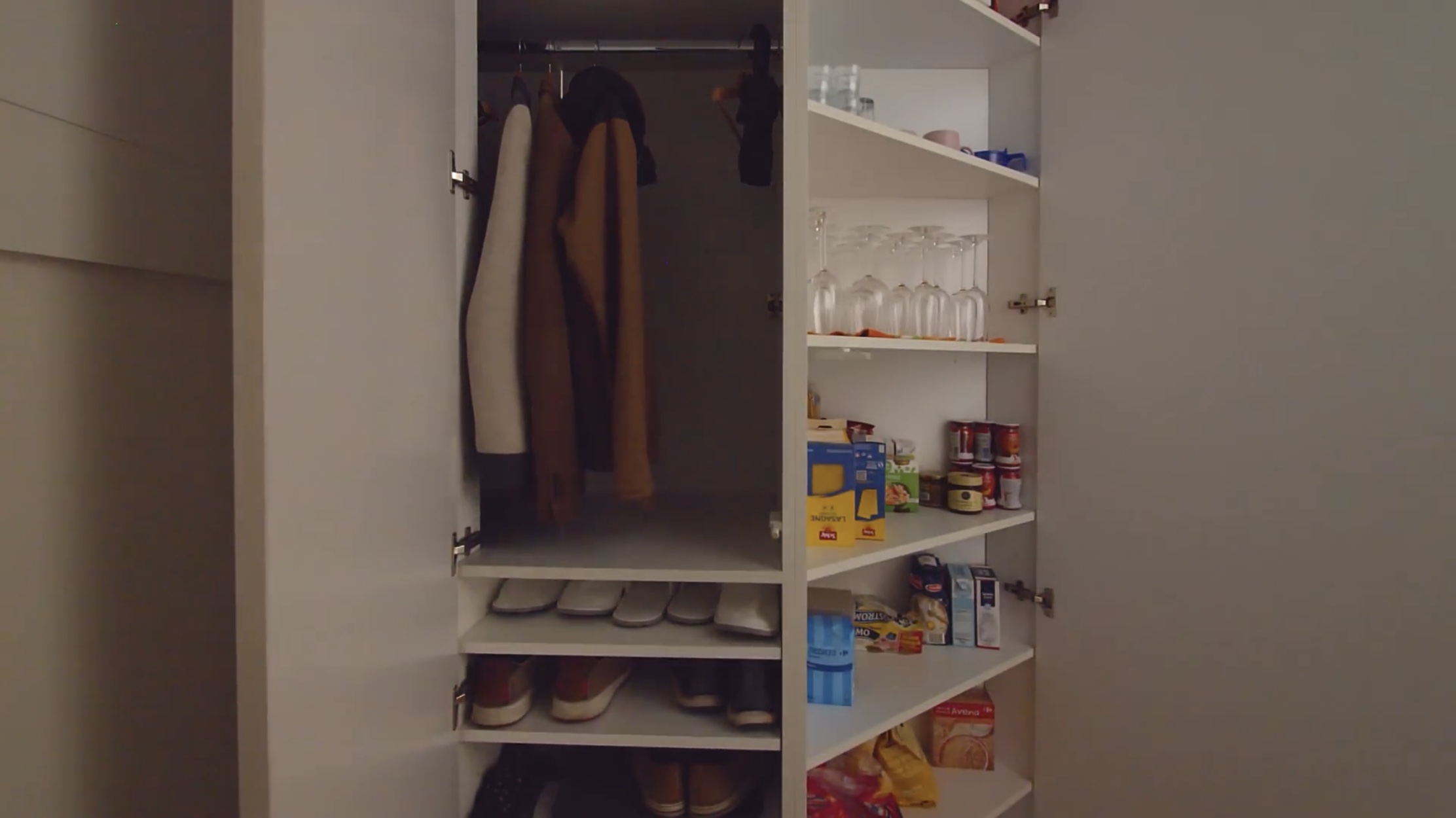 스토리지 안에는 팬트리 용도로 사용할 수 있는 넉넉한 수납공간이 있습니다.