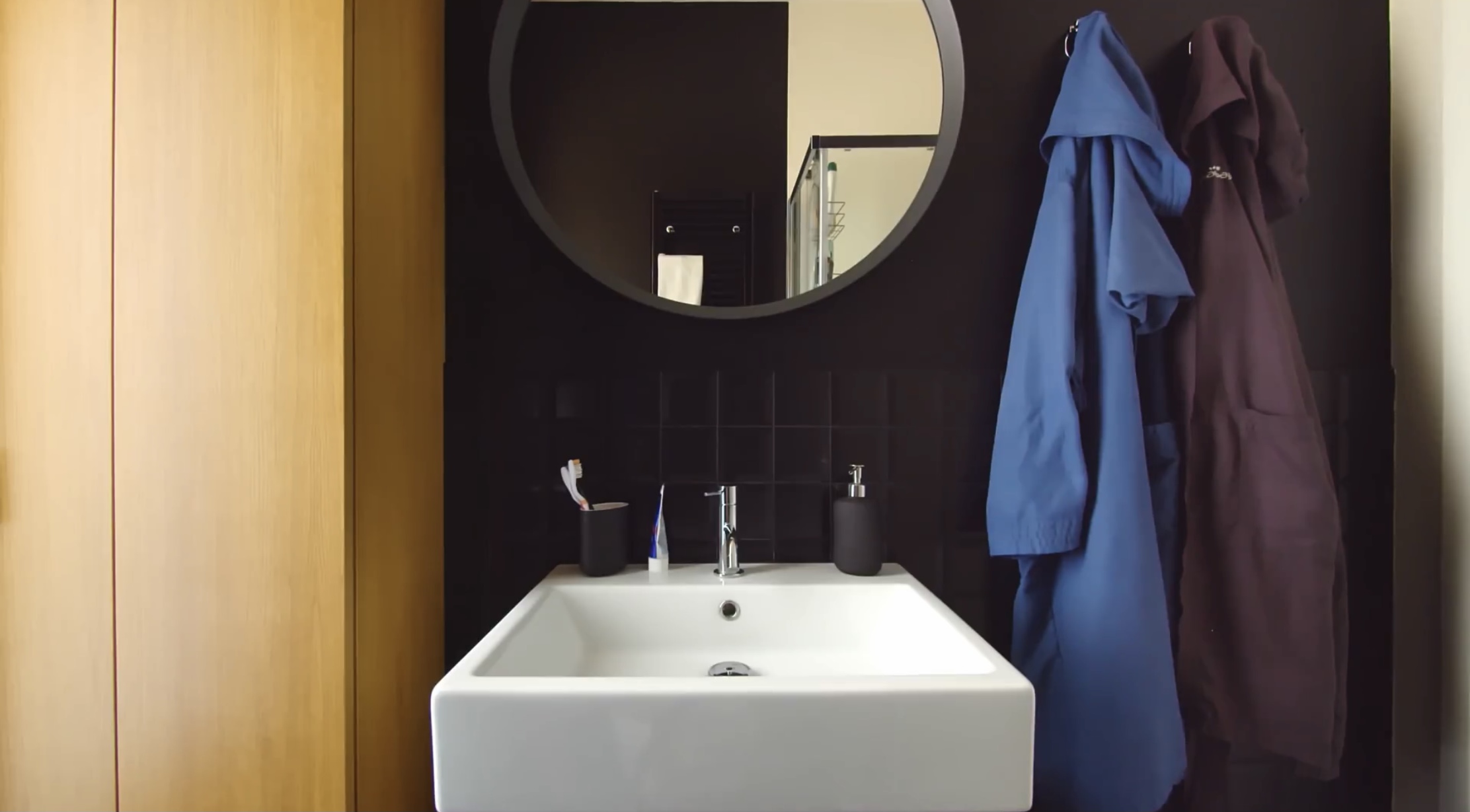 왼쪽에 보이는 문은 화장실입니다.