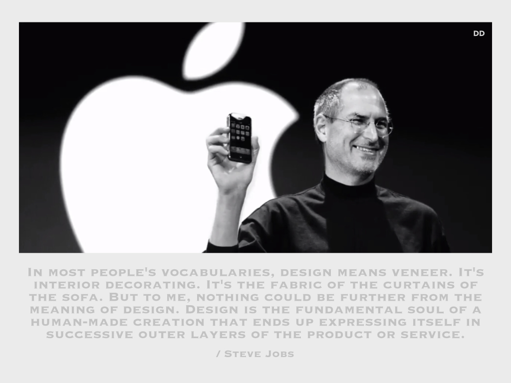 In most people's vocabularies, design means veneer. It's interior decorating. It's the fabric of the curtains of the sofa. But to me, nothing could be further from the meaning of design. Design is the fundamental soul of a human-made creation that ends up expressing itself in successive outer layers of the product or service.
