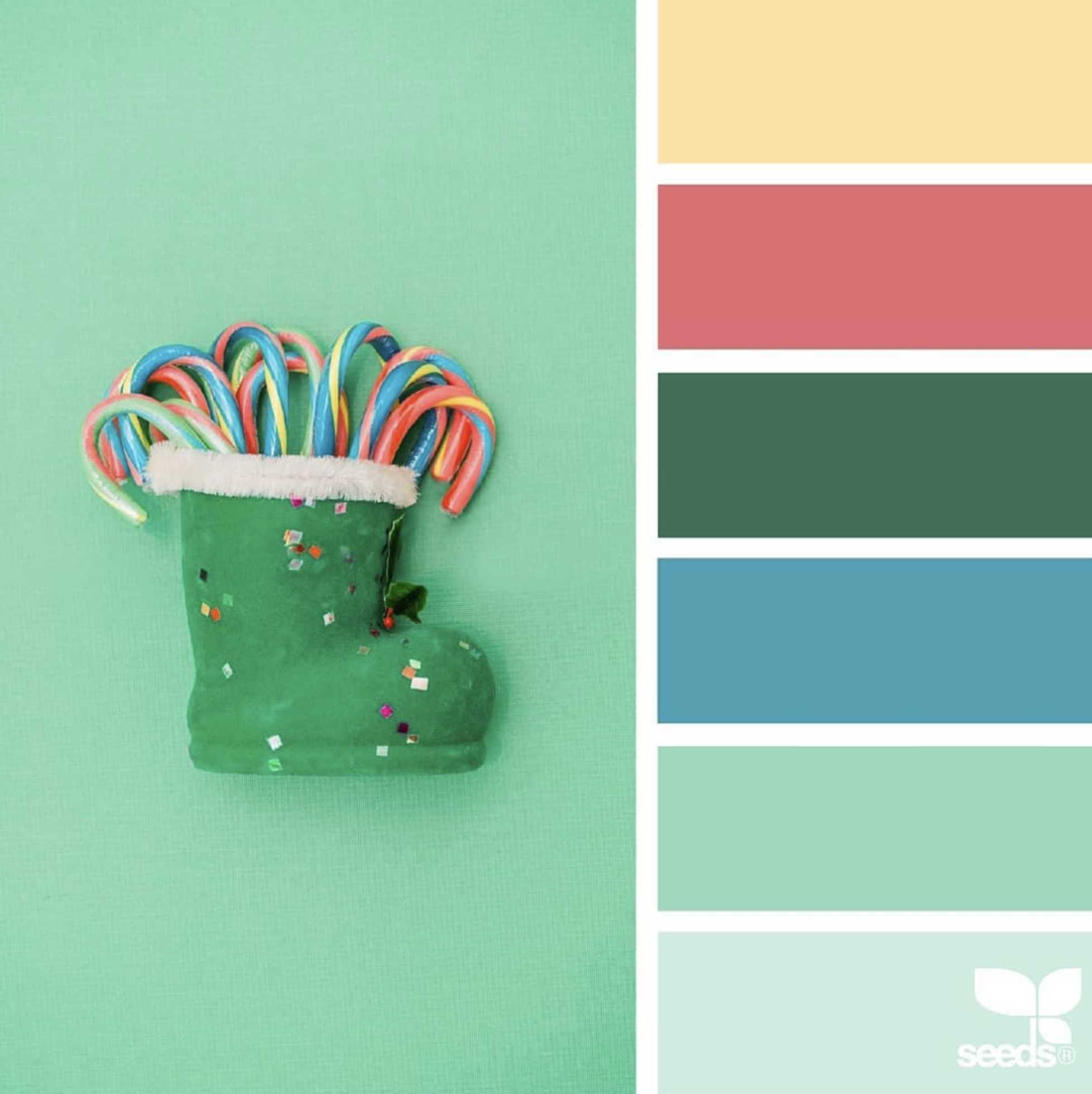 상큼함이 돋보이는 크리스마스 컬러 팔레트로 크리스마스 장식 할때 참고할 만한 색 조합입니다.