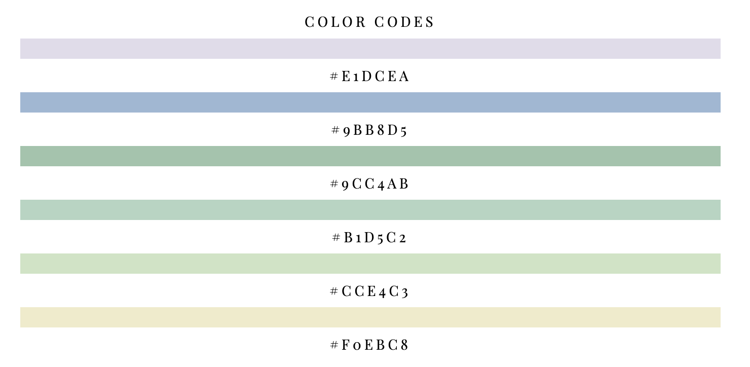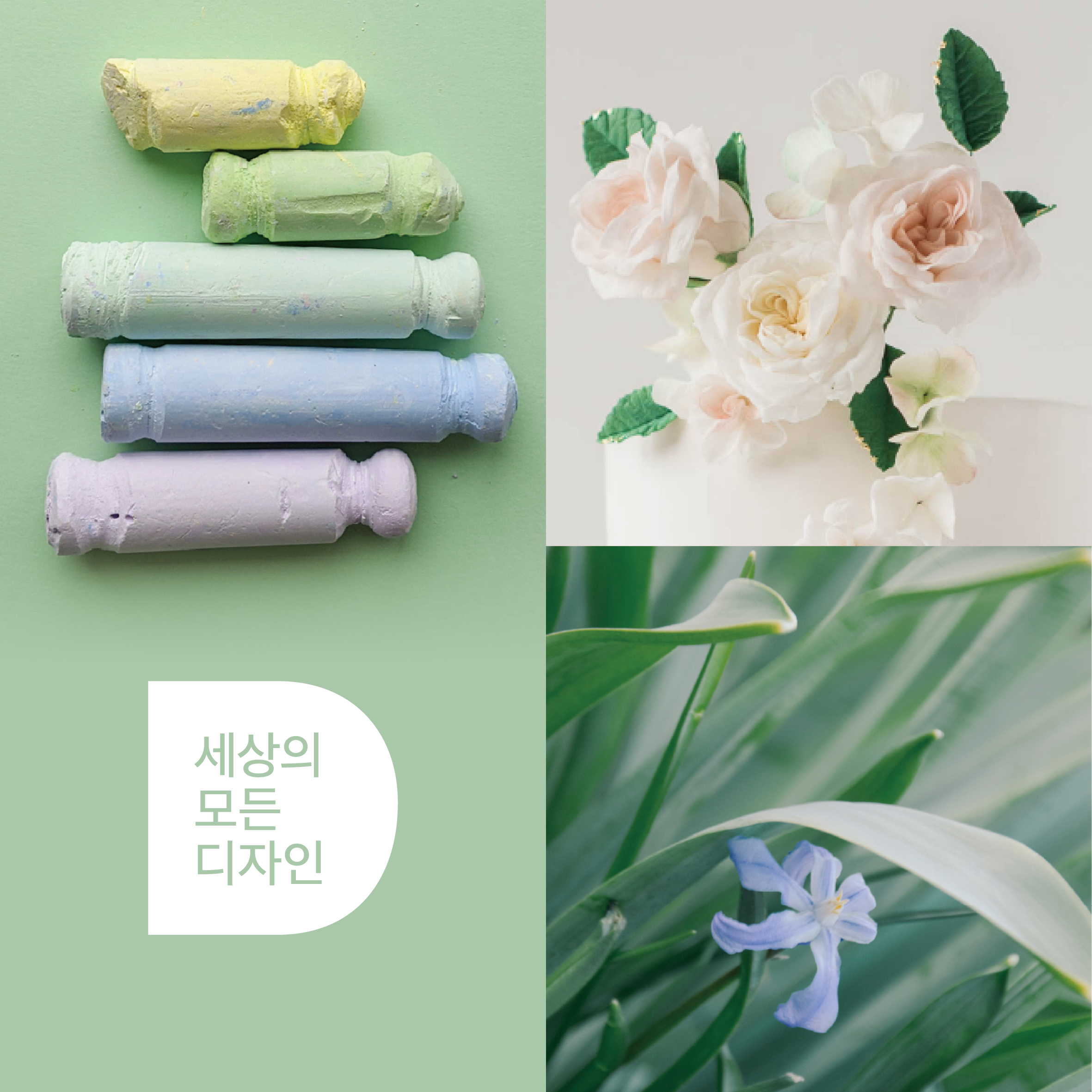 파스텔 톤의 컬러 배색입니다. 톤 다운된 연노랑색부터 연보라색까지 다양하게 구성돼 있지만, 전체적 컬러 조합이 조화롭습니다.