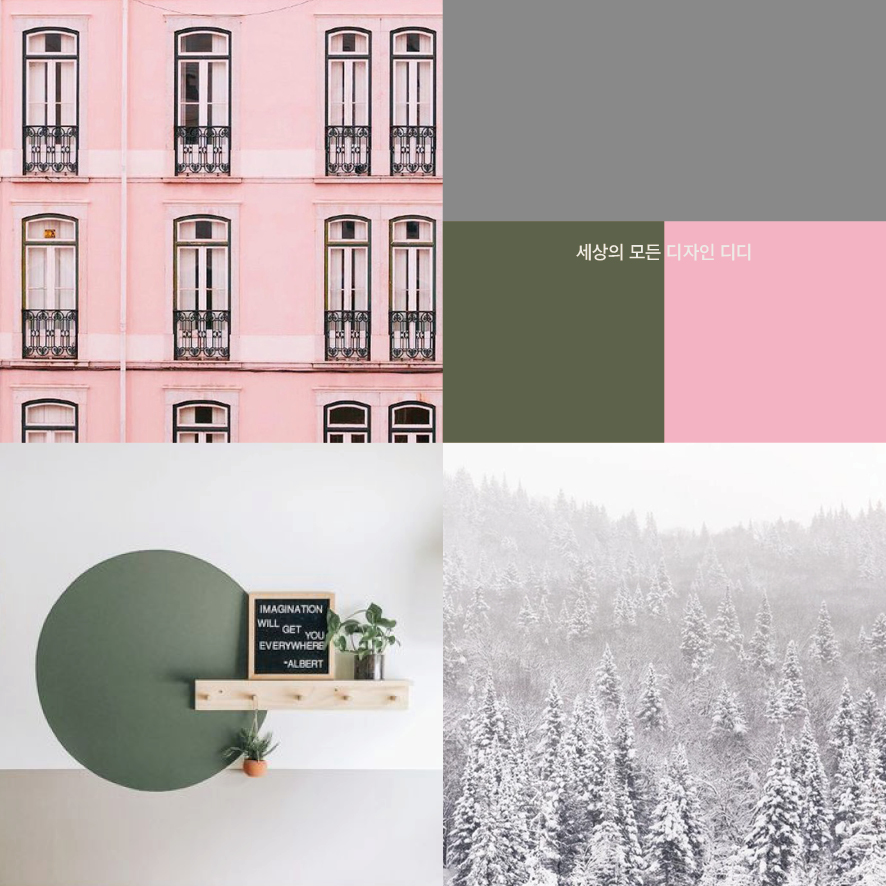 짙은 회색과 분홍색의 조합은 회색이 가지고 있는 차가움이 분홍색을 만나면서 중화됩니다.