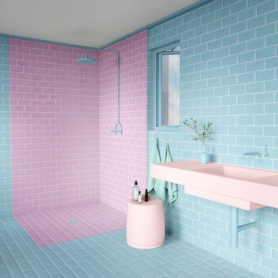 파스텔톤 컬러 조합으로 사랑스러운 욕실을 만들어보세요.