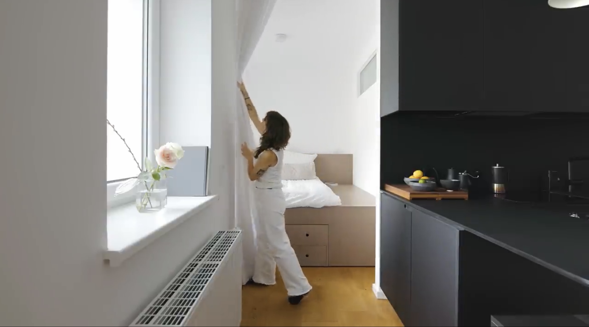 10평 커튼으로 공간을 구분 짓는 인테리어