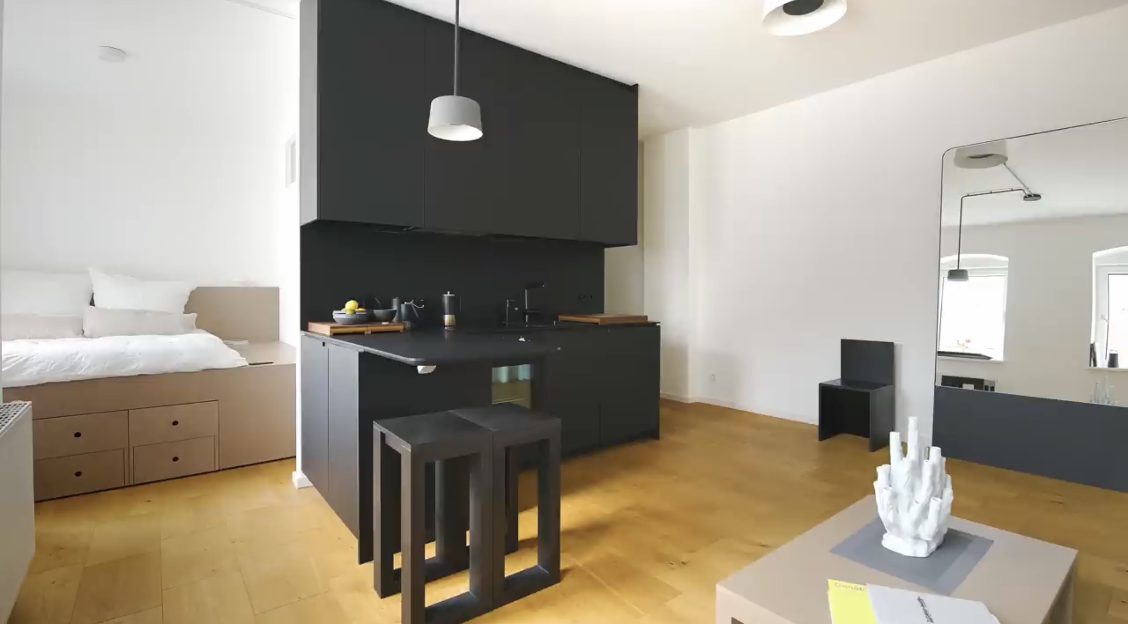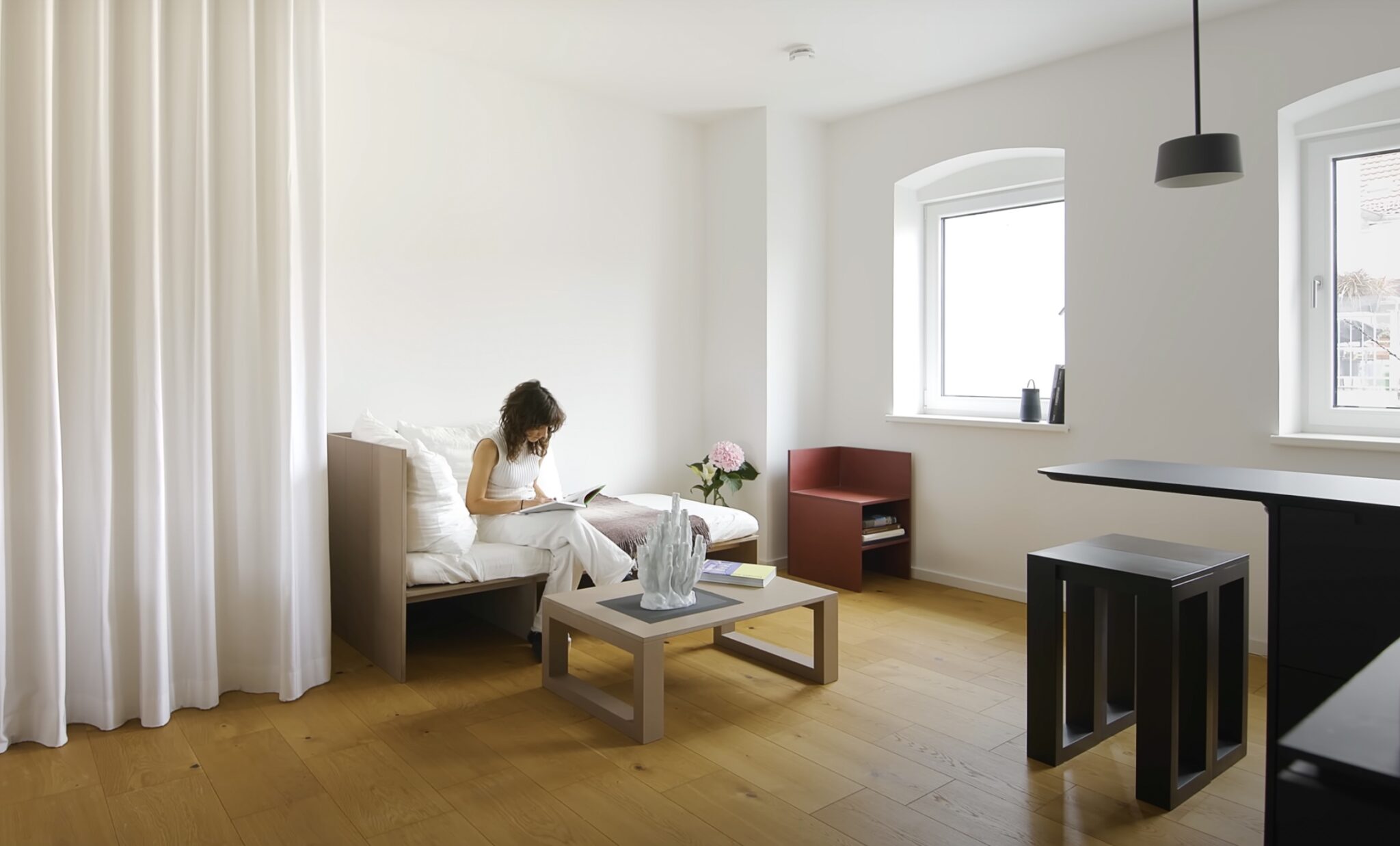 PB: 그건 약간 우연이었어. 전에 언급했듯이, 나는 1년 동안 학생으로 베를린에 왔고, 그 후, 나중에 다시 해외로 가고 싶다는 것을 알고 공부를 끝내기 위해 바르셀로나로 돌아갔다. 그래서 2007년에 졸업 후, 나는 런던으로 이사했고, 그곳에서 건축 사무실에서 일했고, 2009년에는 베를린으로 돌아왔다. 2009년부터 2012년까지 나는 베를린의 다른 건축 사무실에서 일하고 있었고 2012년경에 친구가 Neukölln이라는 동네에서 산 작은 아파트(30평방미터)를 디자인하기 위해 나에게 문의했다. 나는 많은 동기와 약간의 실험(구출된 재료를 사용하고 약간 다기능적인 가구를 디자인하는) 아이디어로 이 프로젝트를 수행했다. 이 프로젝트는 몇몇 건축 출판물에 실렸고 이러한 유형의 프로젝트에서 경력을 쌓도록 격려했다.