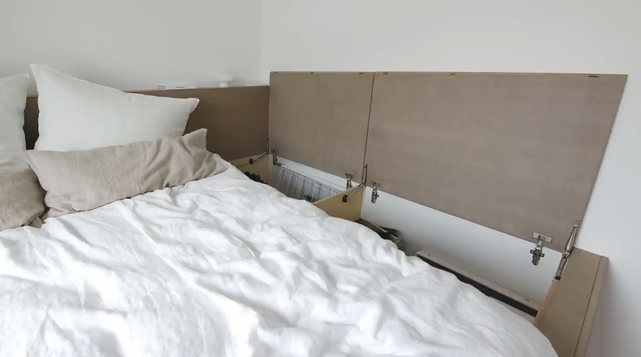 침대 프레임을 활용해 수납공간을 만들었네요.