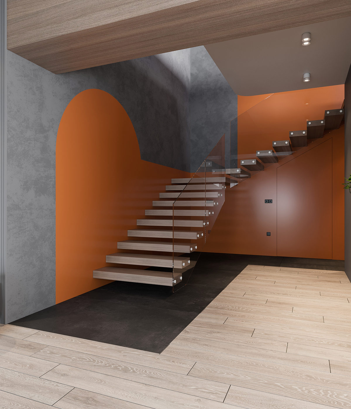 도회적이면서 차가운 느낌을 주는 회색에 따뜻한 느낌의 브라운 컬러의 조합은 안정감을 주며 고급스러운 느낌을 줍니다.