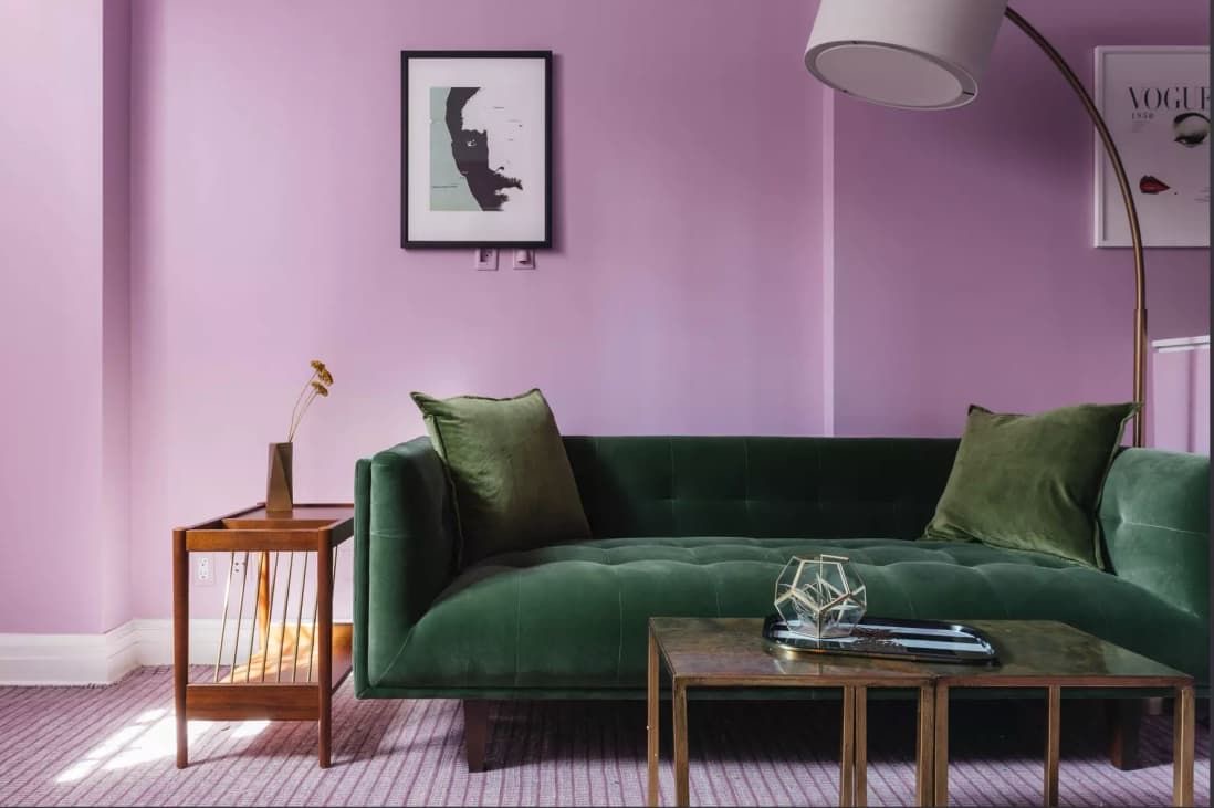 라벤더 컬러와 짙은 녹색 컬러 매치