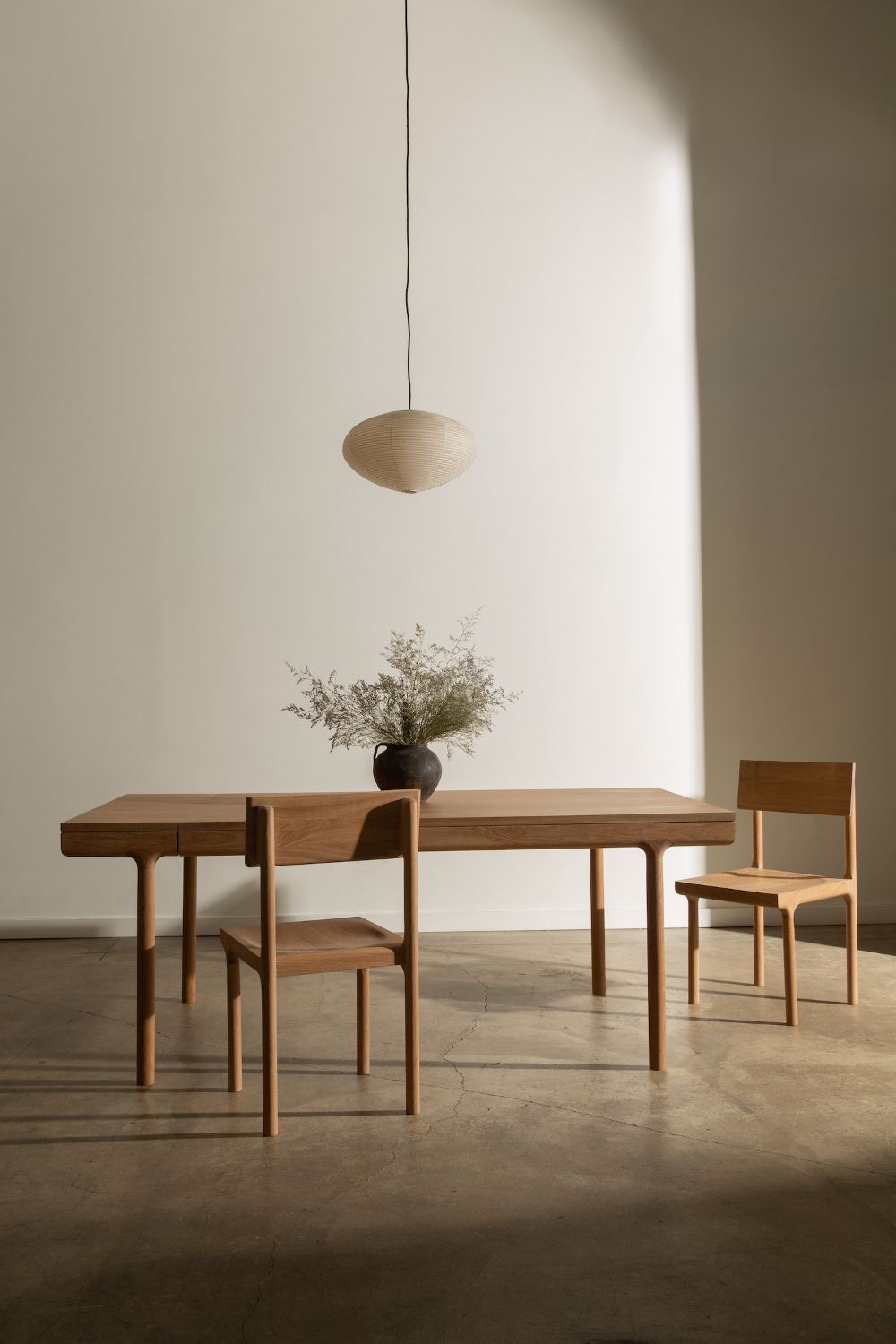 거실인테리어, 소파, 티 테이블, 식탁, 선반에 뉴트럴톤의 색이 활용되었습니다.