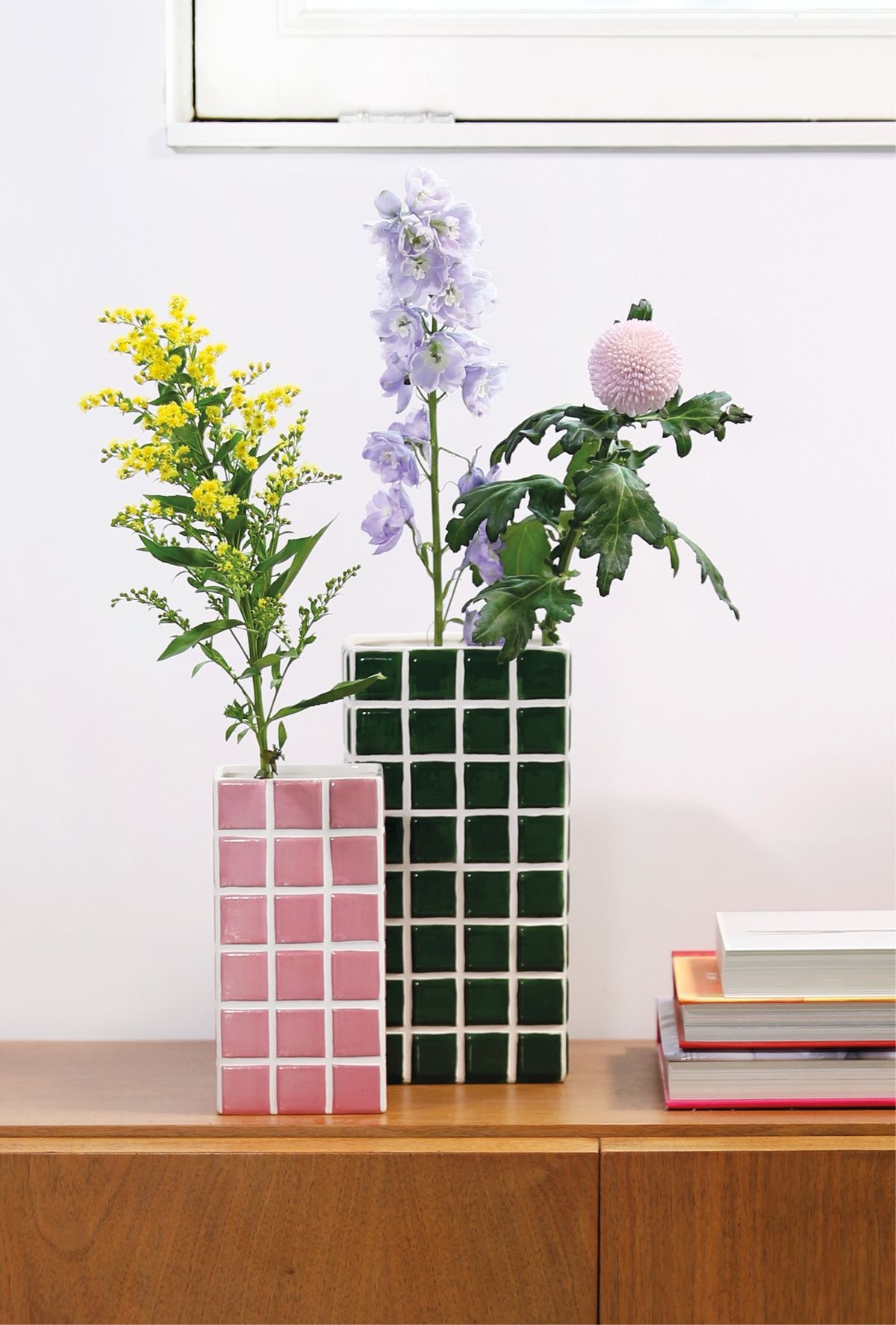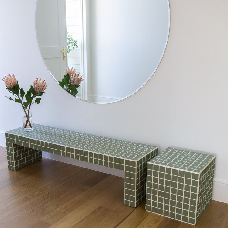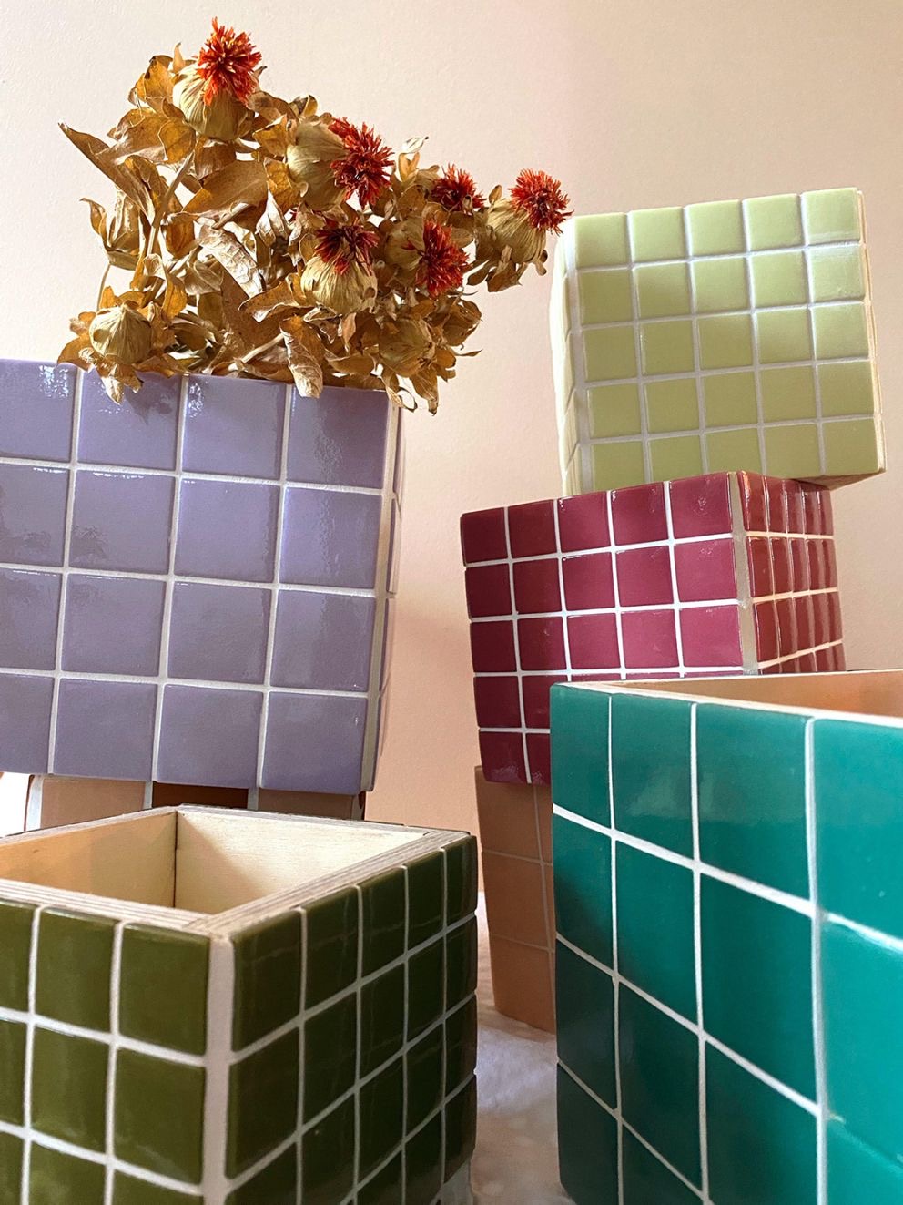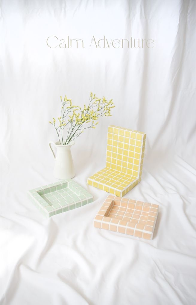 광택감 있는 다양한 컬러의 타일 가구, 소품으로 인테리어에 활용해 보세요.
