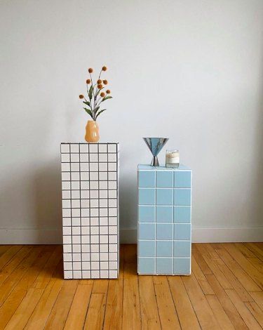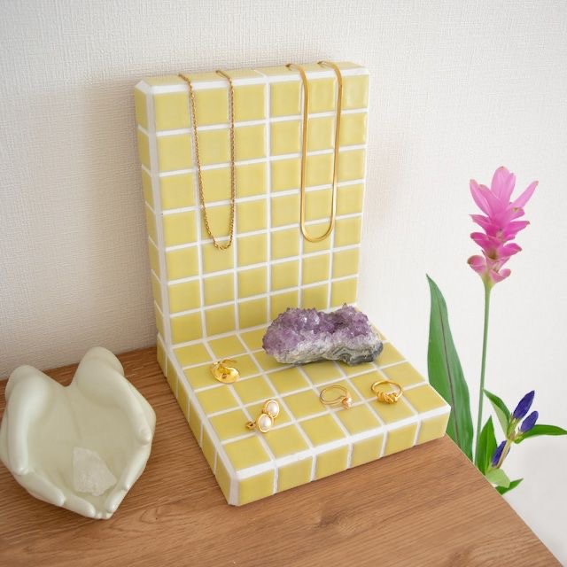 장식할 테이블 역할을 하는 타일 오브제로써 타일 크기가 다른 제품을 놓는 것만으로도 감각적인 느낌을 줍니다.