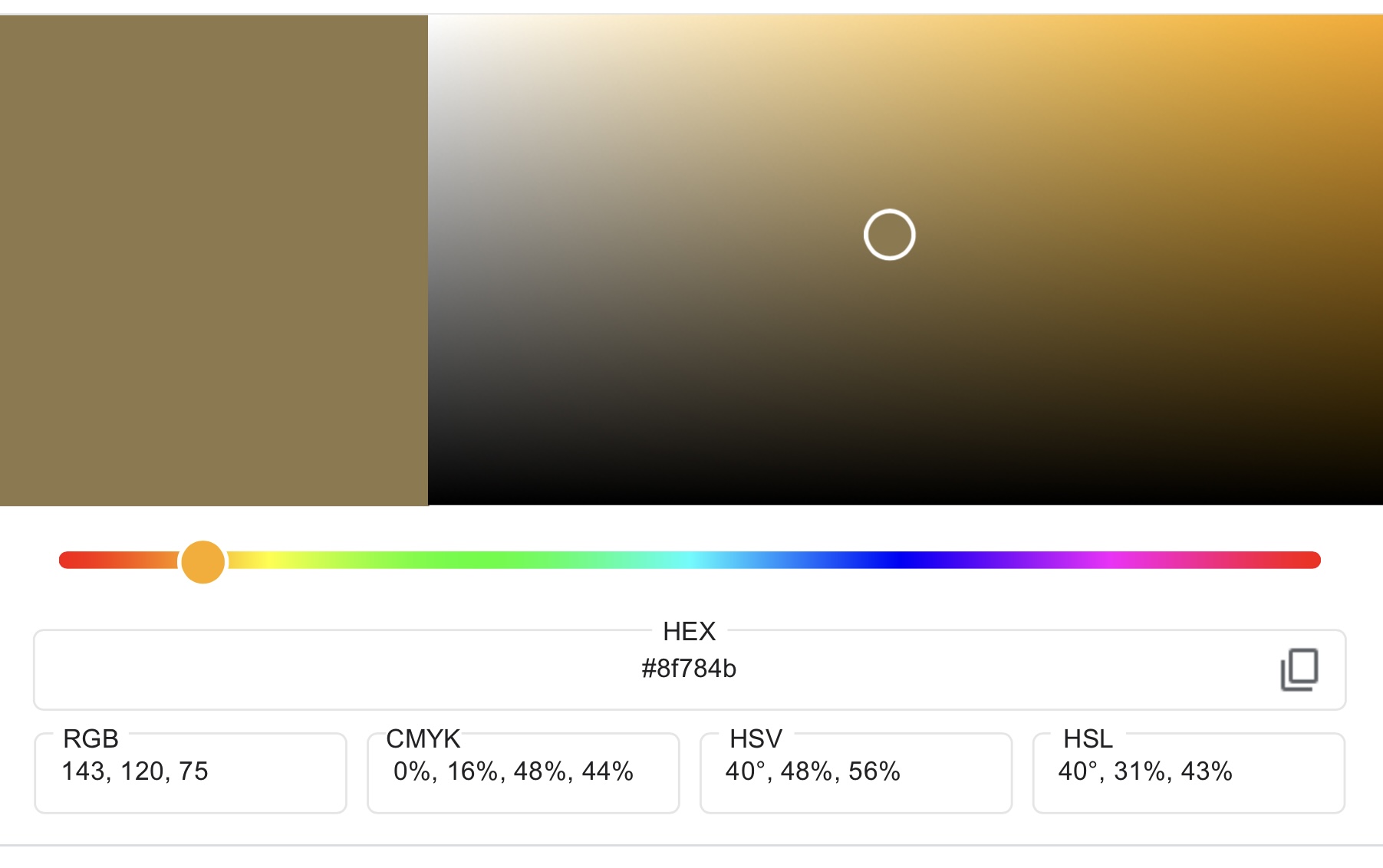 HSV (h, s, v) (39°, 47%, {{{v}}}%)