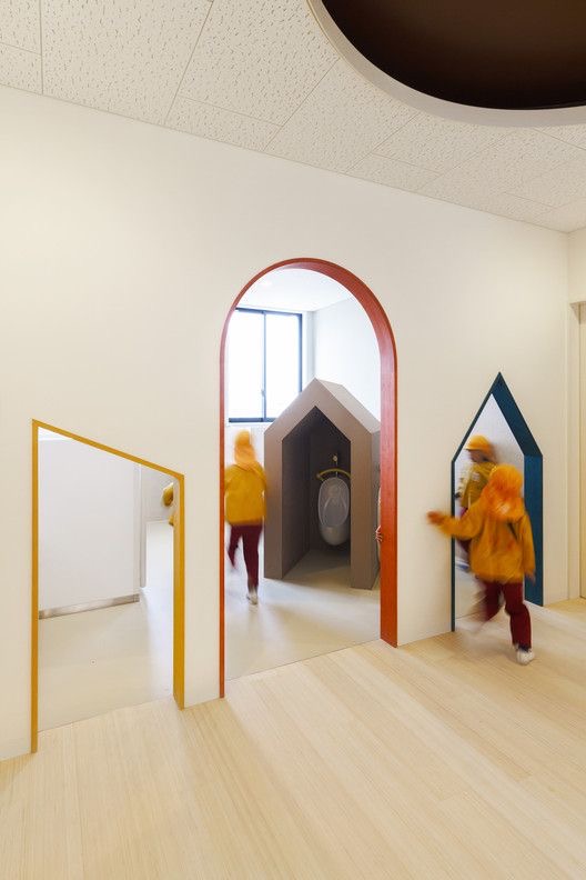 문을 없애고 아치형과 오각형 사각형 형태로 문을 만들어 측면에만 색을 칠해 유니크한 느낌을 줍니다.