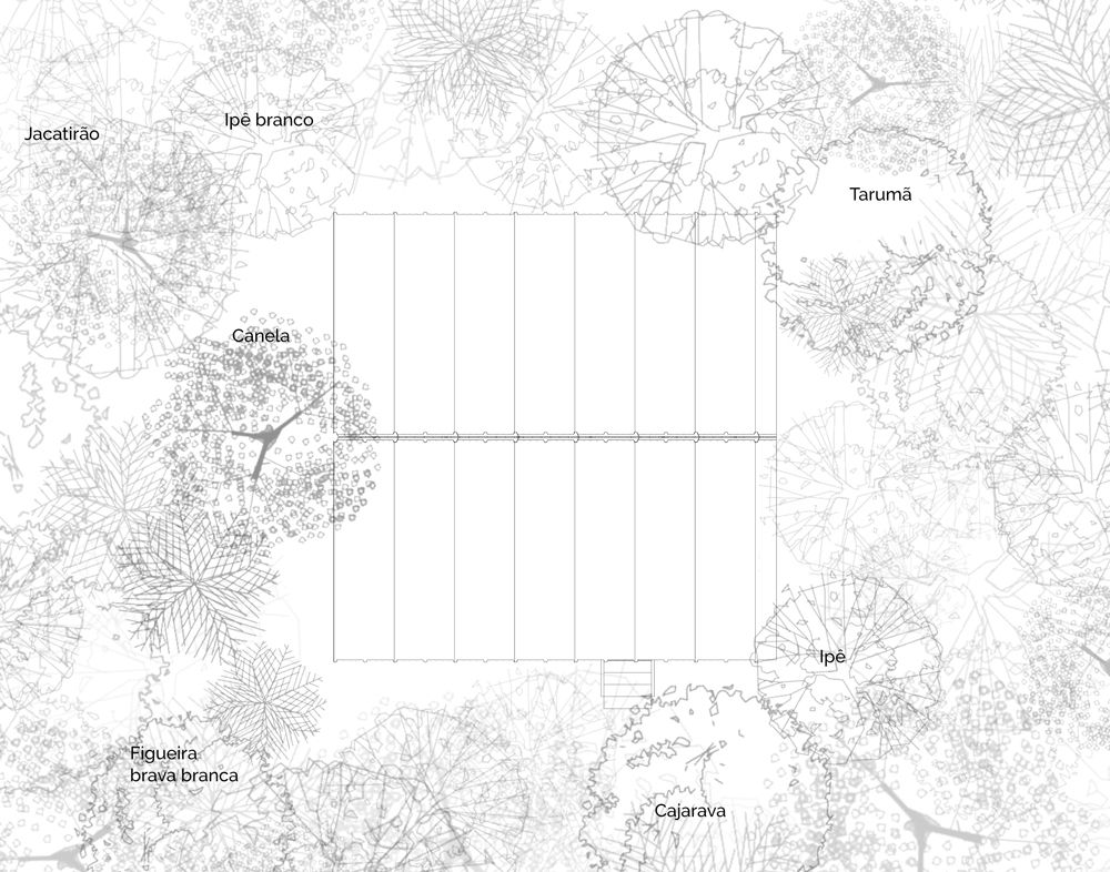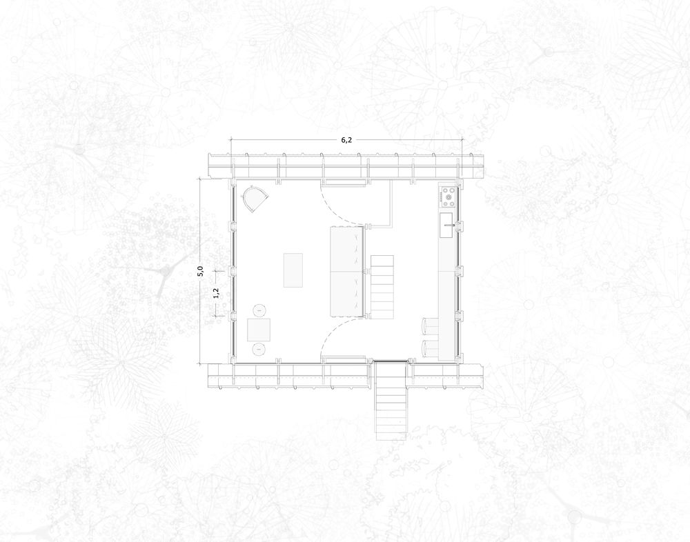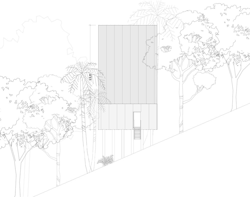 숲속의 아주 작은 면적에 세워져 나무와 자연과 밀접한 형태를 보이고 있습니다.