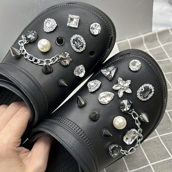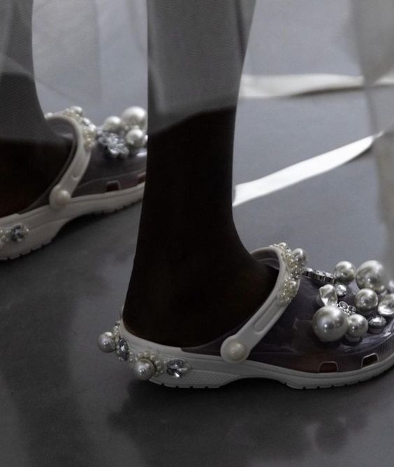 다양한 크기의 진주와 큐빅으로 고급스럽게 장식된 크록스