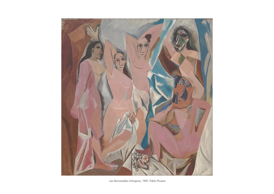 4. 파블로 피카소의 아비뇽의 여인들: 피카소의 초기 입체주의 작품으로, 강렬한 이미지와 구조적인 형태가 돋보입니다.