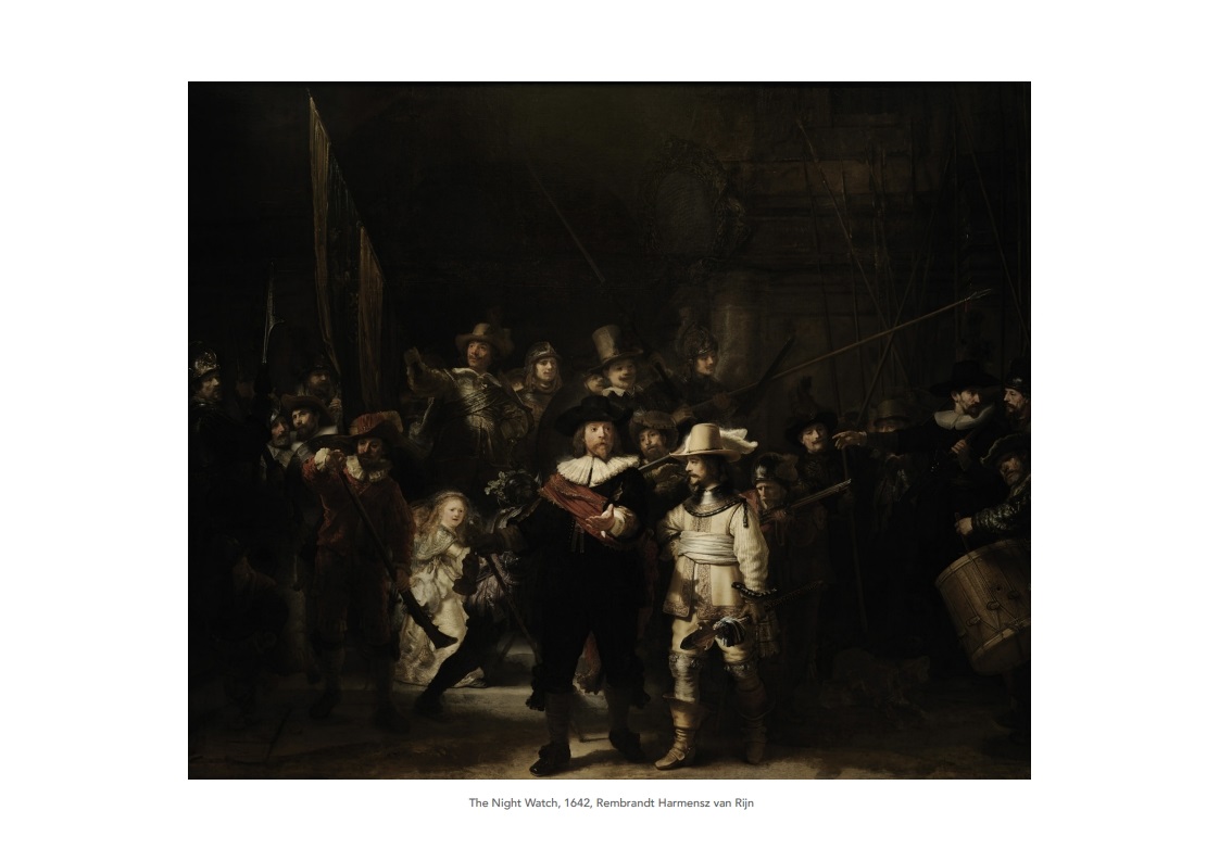 7. 렘브란트의 야경: 민병대를 웅장하고 자세하게 묘사한 작품입니다.