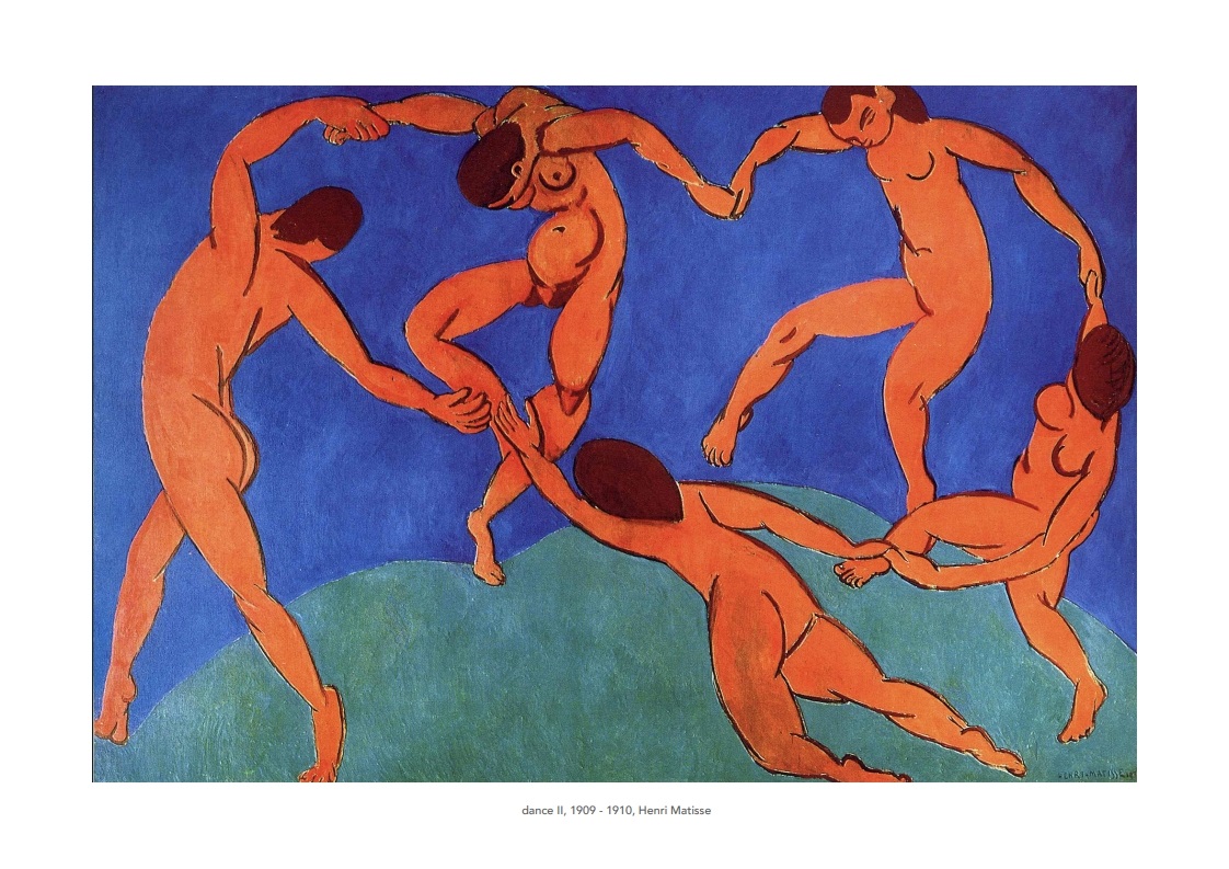 3. 앙리 마티스의 춤: 활기차고 역동적인 인물들이 춤을 추는 장면으로, 생동감 넘치는 색채가 특징입니다.