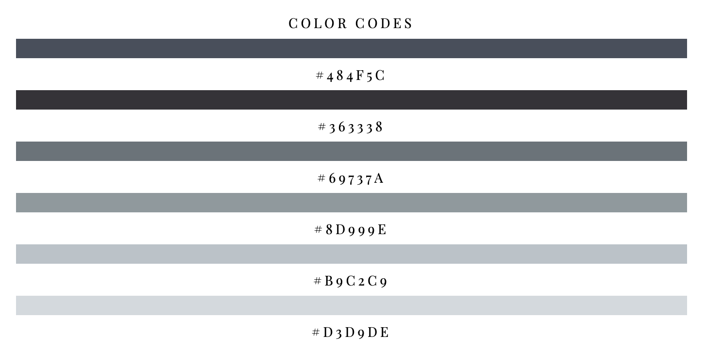 회색 그라데이션 컬러 팔레트입니다. 안정감이 있으면서 도회적인 느낌을 주는 배합입니다.