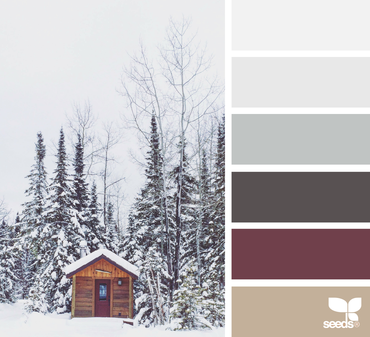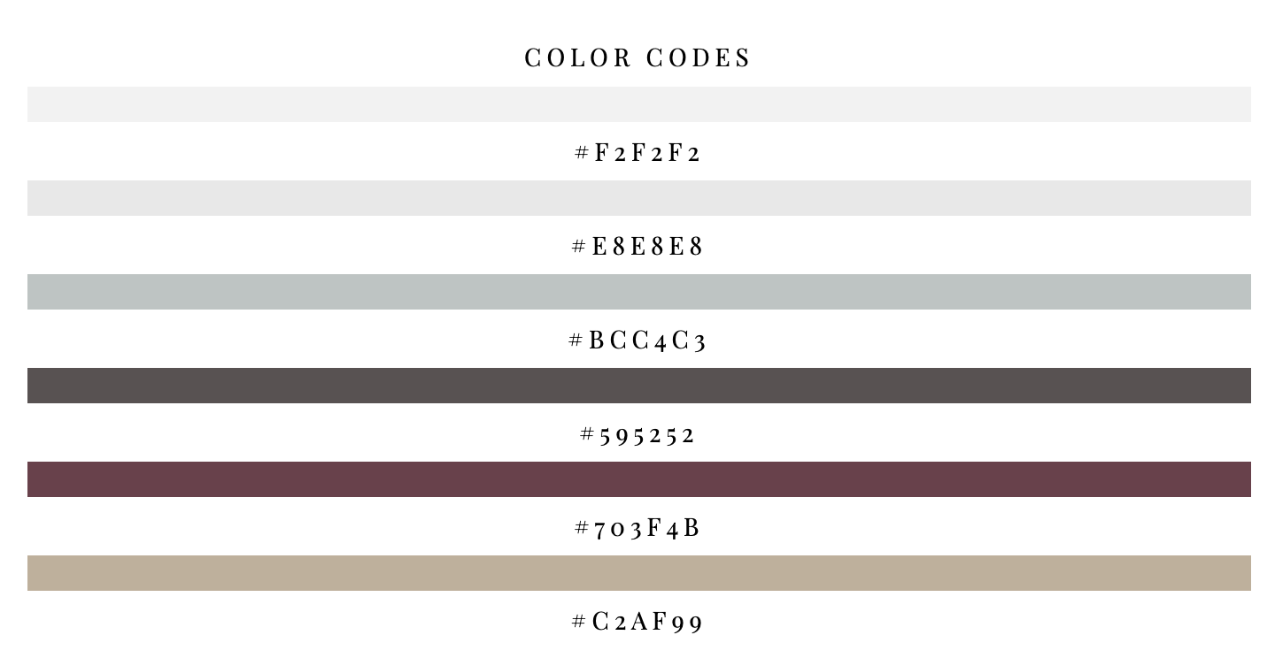 연한 회색부터 짙은 회색과 톤 다운된 진 빨간색과 베이지 컬러가 조합된 컬러 팔레트입니다.