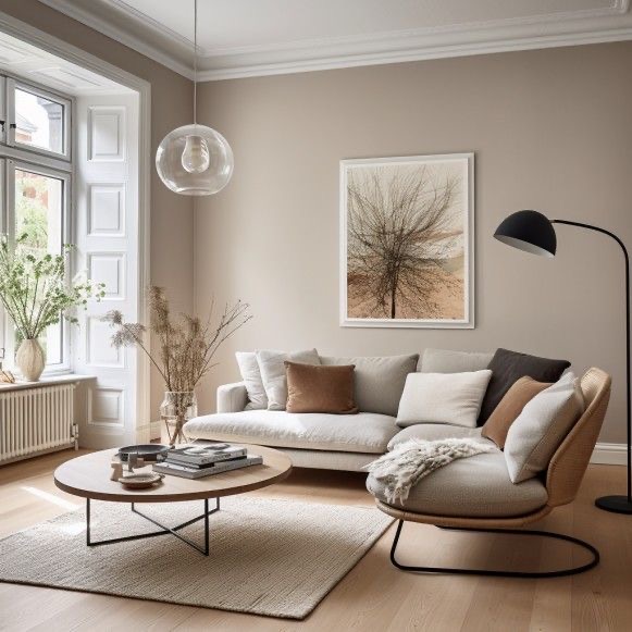 - 거실: 중성적인 베이지나 그레이로 따뜻하고 아늑한 분위기를 조성합니다. 베이지 톤의 소파나 그레이 톤의 러그를 선택해보세요.