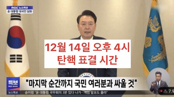 윤 대통령의 두 번째 탄핵 소추안 표결이 오후 4시에 진행될 예정입니다. 여야 의원들은 이번 계엄 사태의 책임 윤에게 물어야 할지에 대한 표결을 실시할 것입니다.