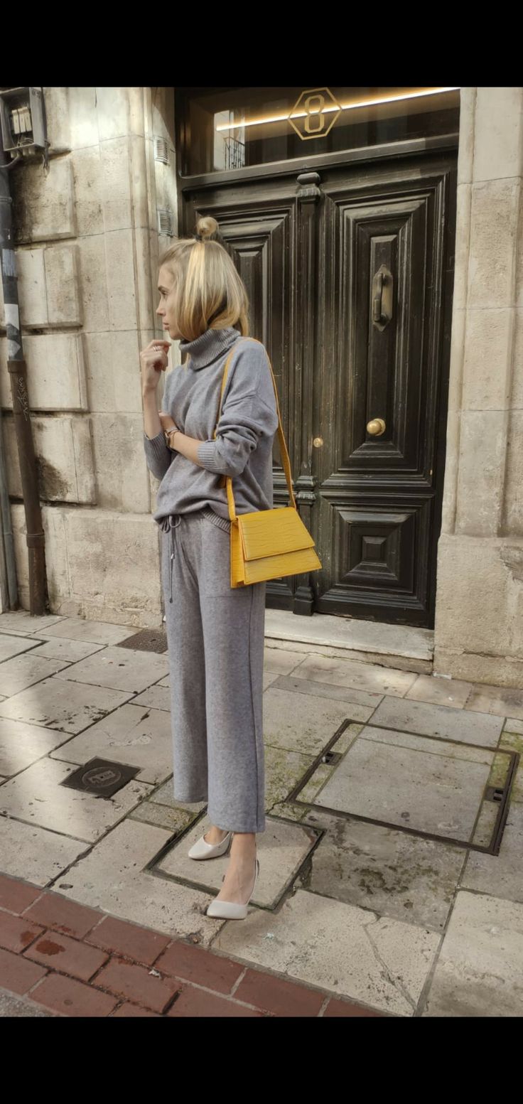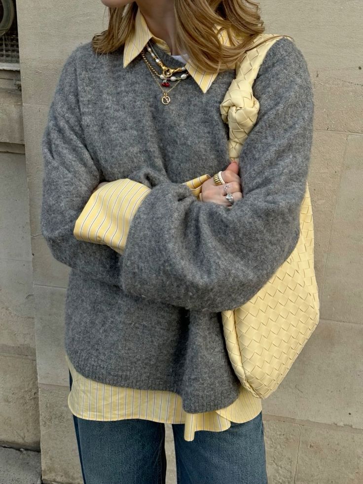 - "그레이와 옐로우의 조화로 완성하는 세련된 룩"