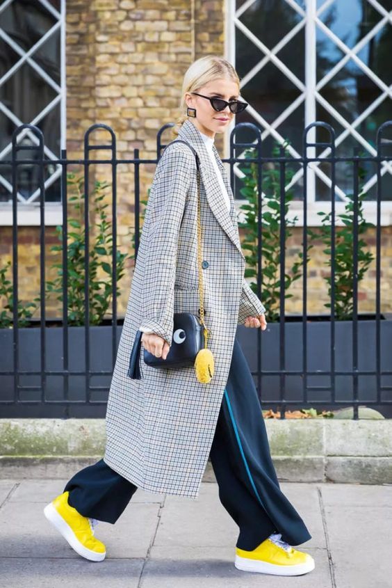 일상복: 회색 티셔츠에 노란색 스카프나 가방을 매치하면 스타일리시하면서도 눈에 띄는 포인트를 줄 수 있습니다. 회색 바지에 노란색 신발을 신는 것도 좋은 방법입니다.