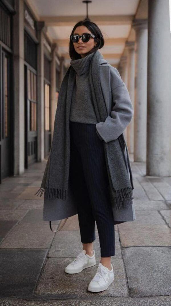 - "그레이와 화이트로 우아하게 변신하는 겨울 패션 아이디어"
