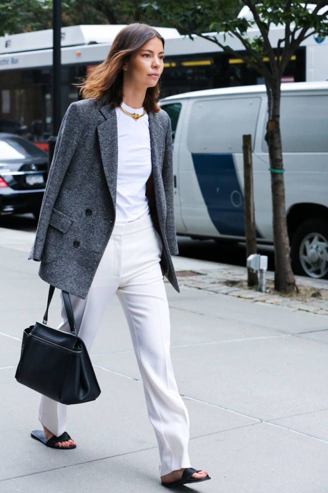 그레이 블라우스와 화이트 팬츠: 그레이 블라우스에 화이트 팬츠를 매치하면 차분하면서도 세련된 느낌을 줄 수 있습니다. 여기에 엘레강스한 주얼리를 더하면 완벽한 우아한 스타일이 됩니다.