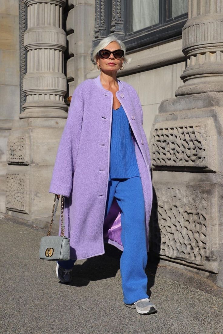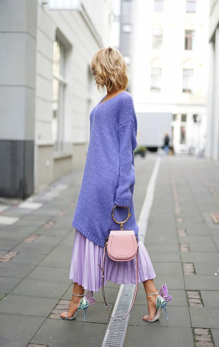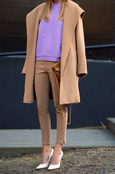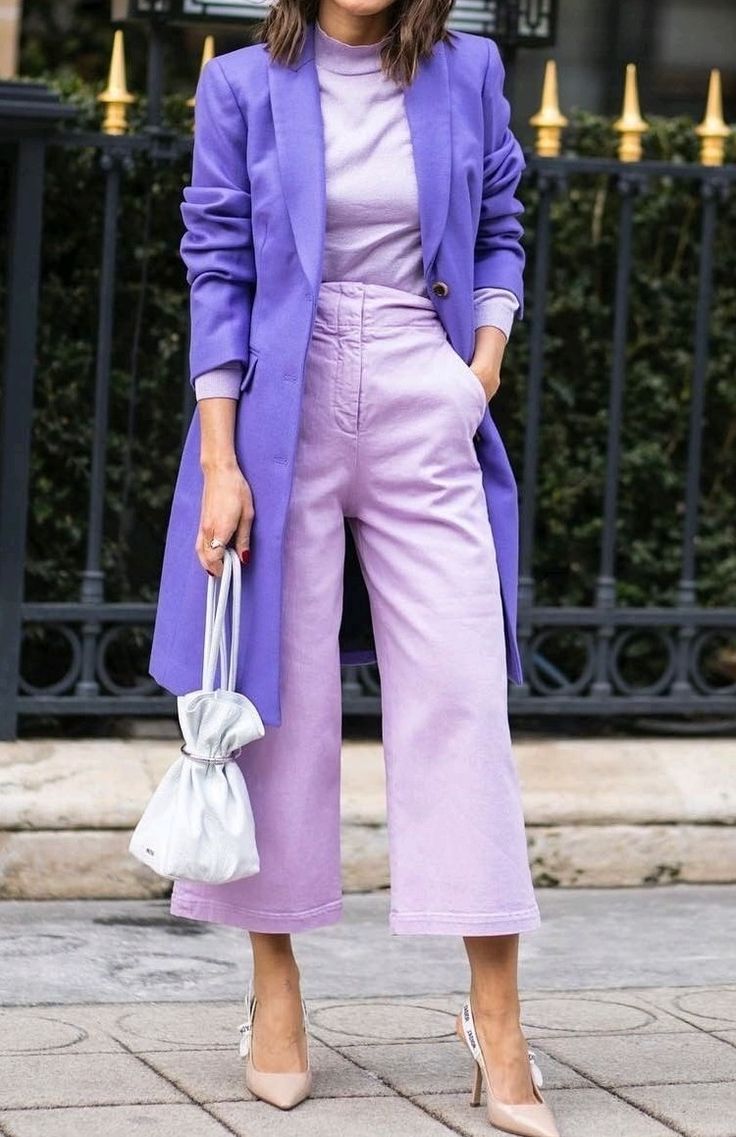 - "사랑스러운 라벤더 컬러와 잘 어울리는 세련된 패션 스타일링"