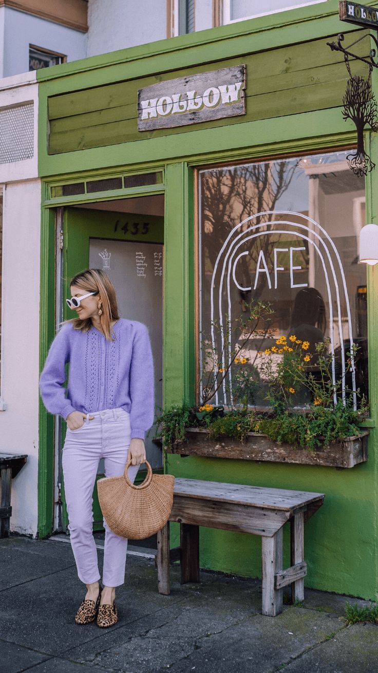 포인트 컬러로 사용: 라벤더 컬러를 포인트로 사용하는 것도 좋은 방법입니다. 예를 들어, 라벤더 컬러의 가방이나 신발, 스카프 등을 활용해 전체적인 스타일에 포인트를 줄 수 있습니다.