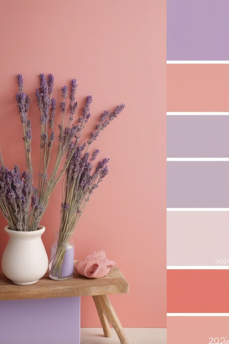 벽 페인트: 라벤더 컬러의 페인트는 방에 차분하고 편안한 분위기를 더해줍니다. 침실이나 거실에 사용하면 좋은 효과를 볼 수 있습니다.