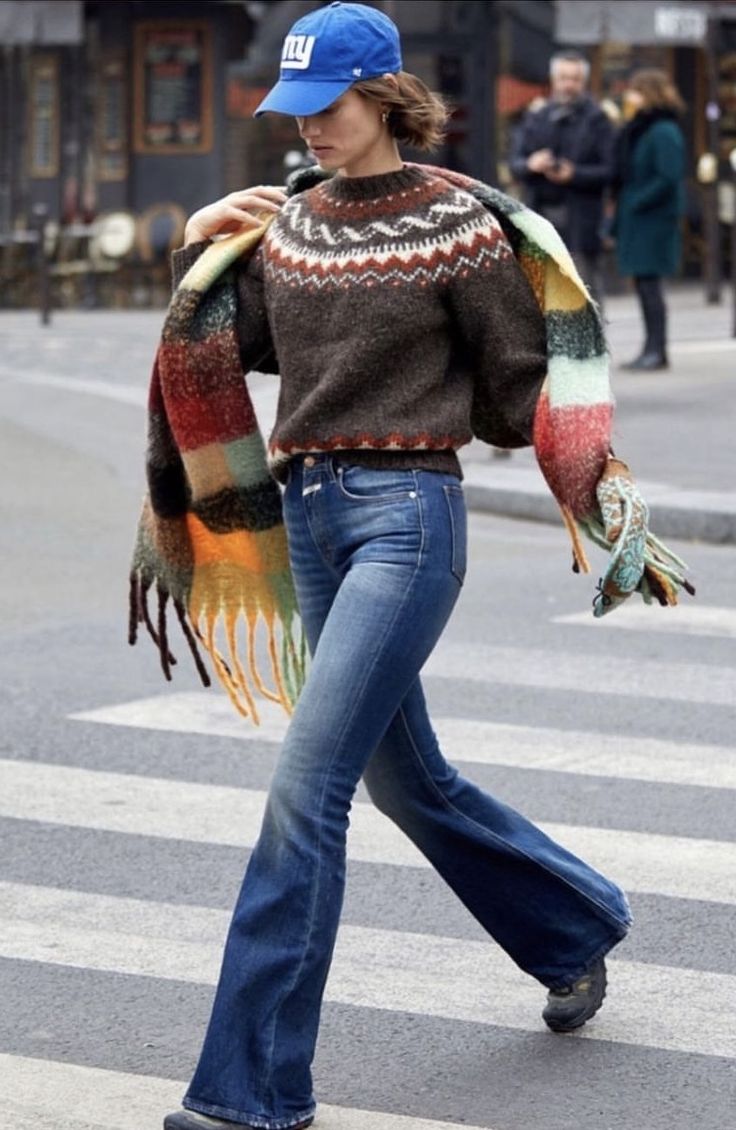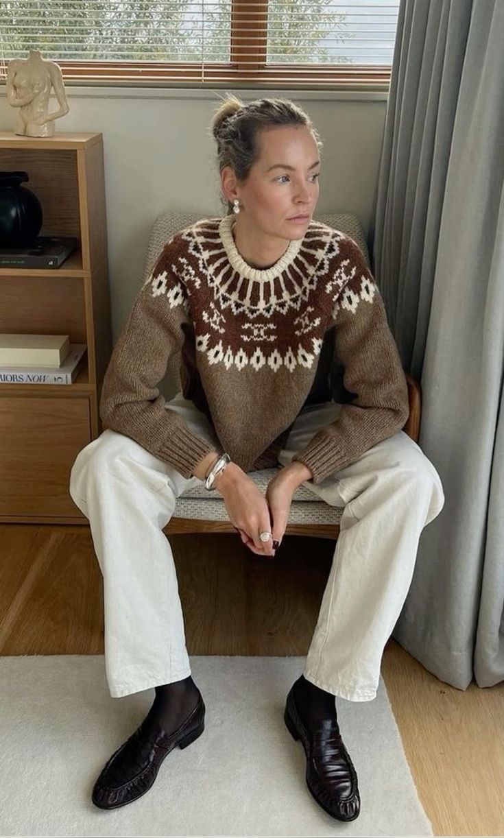 청바지와 매치: 기본적인 청바지와 노르딕 니트를 매치하면 편안하면서도 스타일리시한 데일리 룩이 완성됩니다